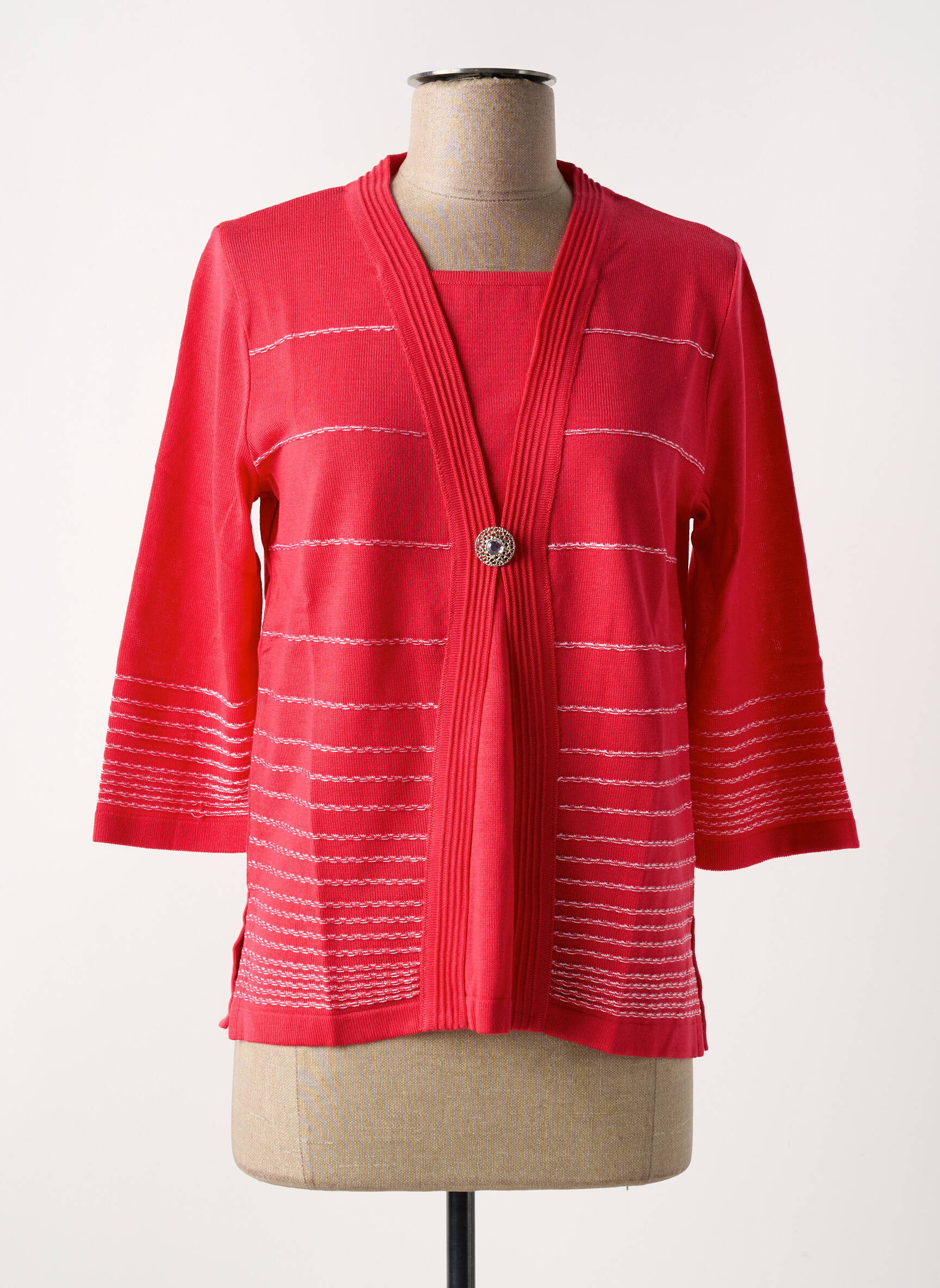 Ce twin-set de la marque HENRY & JULIETTE pour femme est la parfaite occasion de s’offrir une pièce élégante et tendance sans se ruiner. Sa teinte rose éclatante apporte une touche de fraîcheur à toutes vos tenues, tandis que les fines rayures blanches et le bouton central raffiné ajoutent une note d’originalité. Facile à porter, ce twin-set assure un look chic et confortable pour un prix tout doux, idéal pour renouveler votre garde-robe sans compromis sur la qualité.