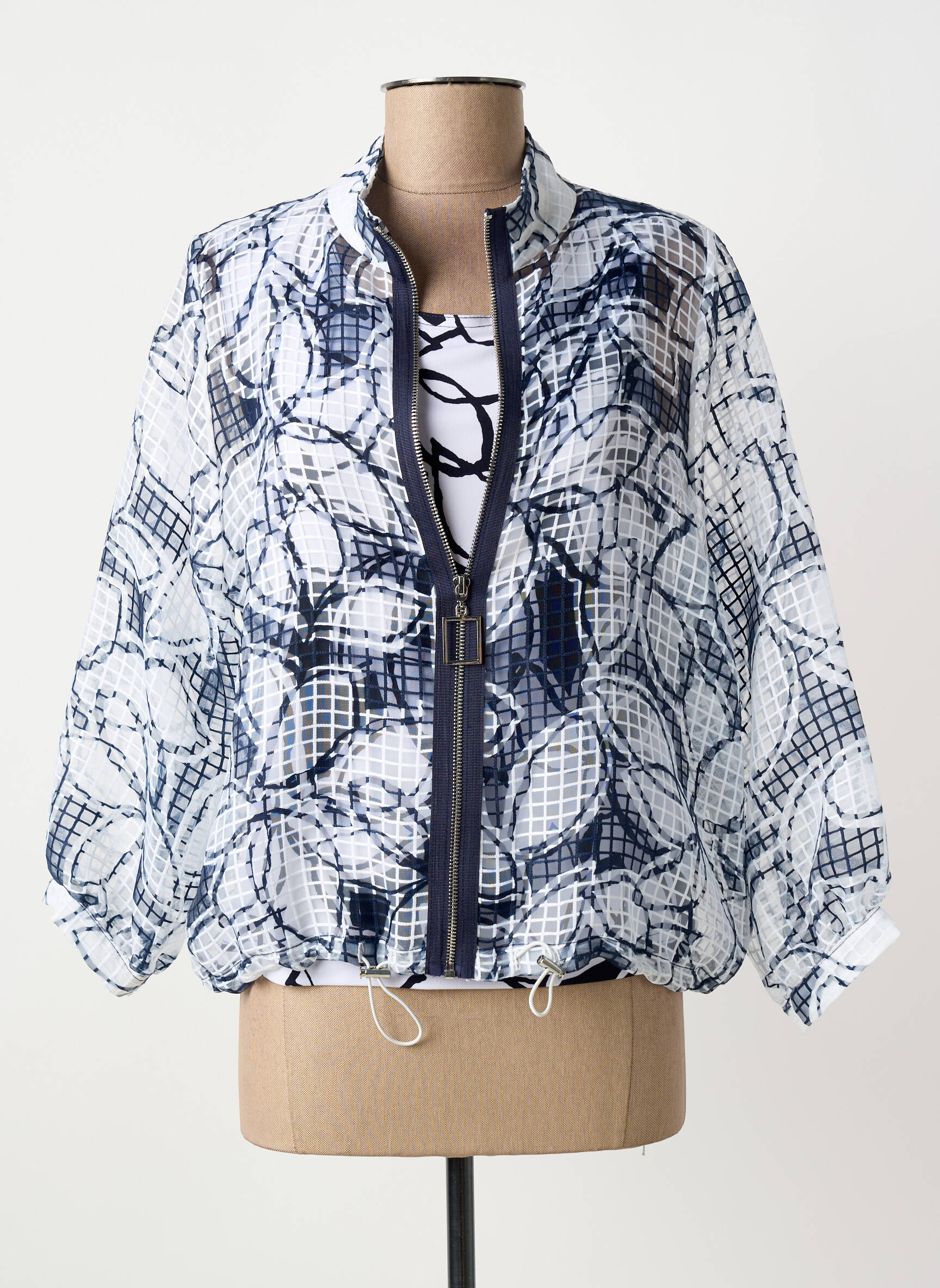 Ce twin-set de la marque JOSEPH RIBKOFF pour femme est une véritable opportunité pour celles qui recherchent une pièce élégante à prix avantageux, avec son effet superposé original, sa veste légère au motif graphique bleu et blanc et son top assorti, il est idéal pour apporter une touche moderne et raffinée à toutes vos tenues sans faire exploser votre budget.