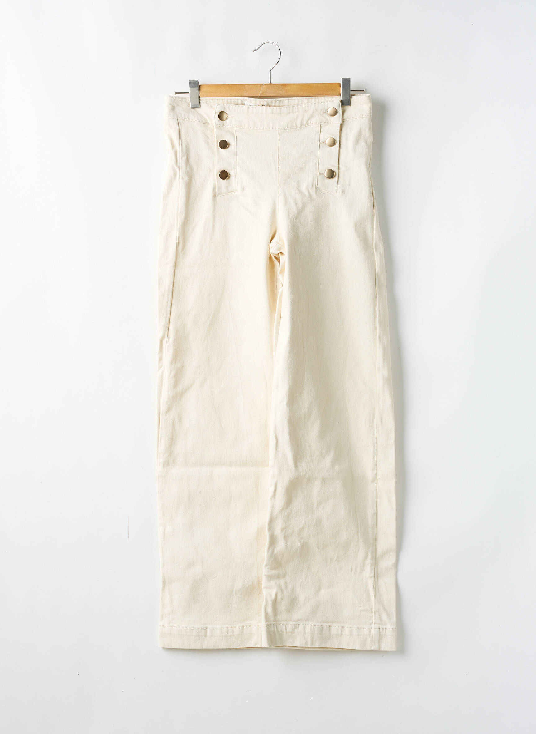 Ce jeans flare de la marque MAISON 123 est l’occasion idéale de s’offrir une touche de style chic à petit prix. Avec sa coupe évasée tendance, son coloris crème lumineux et son boutonnage double sur le devant façon marin, il apporte une silhouette élancée et une allure élégante, parfaite pour sublimer toutes vos tenues sans vous ruiner.