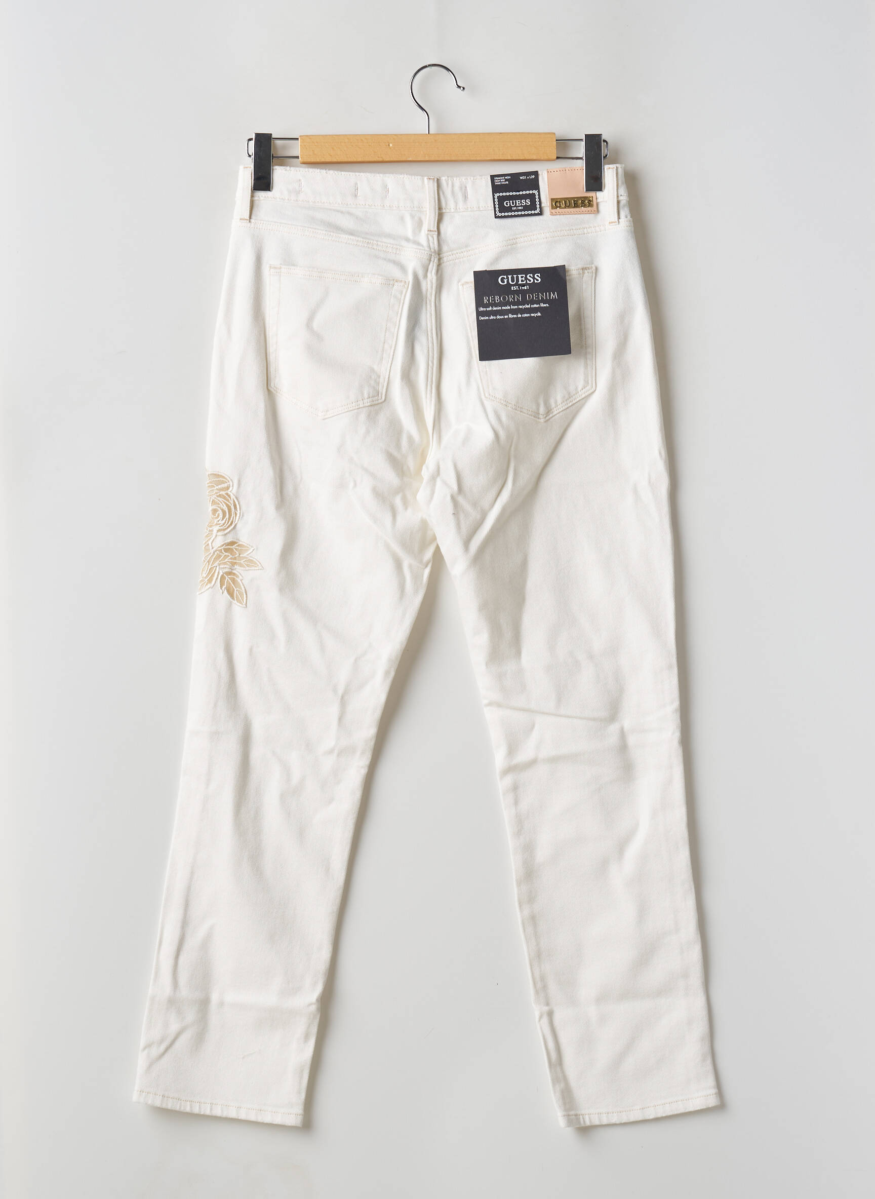 Jeans Coupe Droite Guess Blanc Taille Haute
