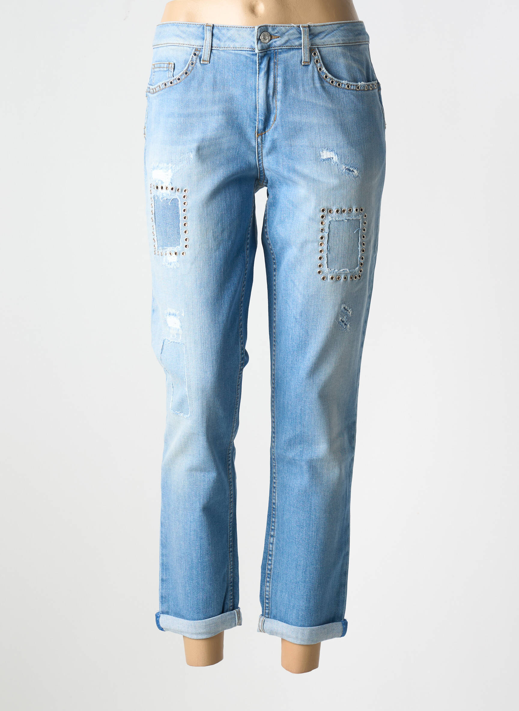 Profitez d’un look tendance sans vous ruiner avec ce jeans coupe droite pour femme signé LIU JO, une pièce à prix mini qui allie style et confort pour toutes vos envies. Son délavage clair, subtilement usé, est rehaussé de détails patchs brodés et rivetés, offrant une allure décontractée et actuelle à petit prix. Idéal pour composer des tenues modernes sans compromis sur l’élégance, ce jeans est une occasion à saisir pour renouveler votre dressing tout en faisant des économies.