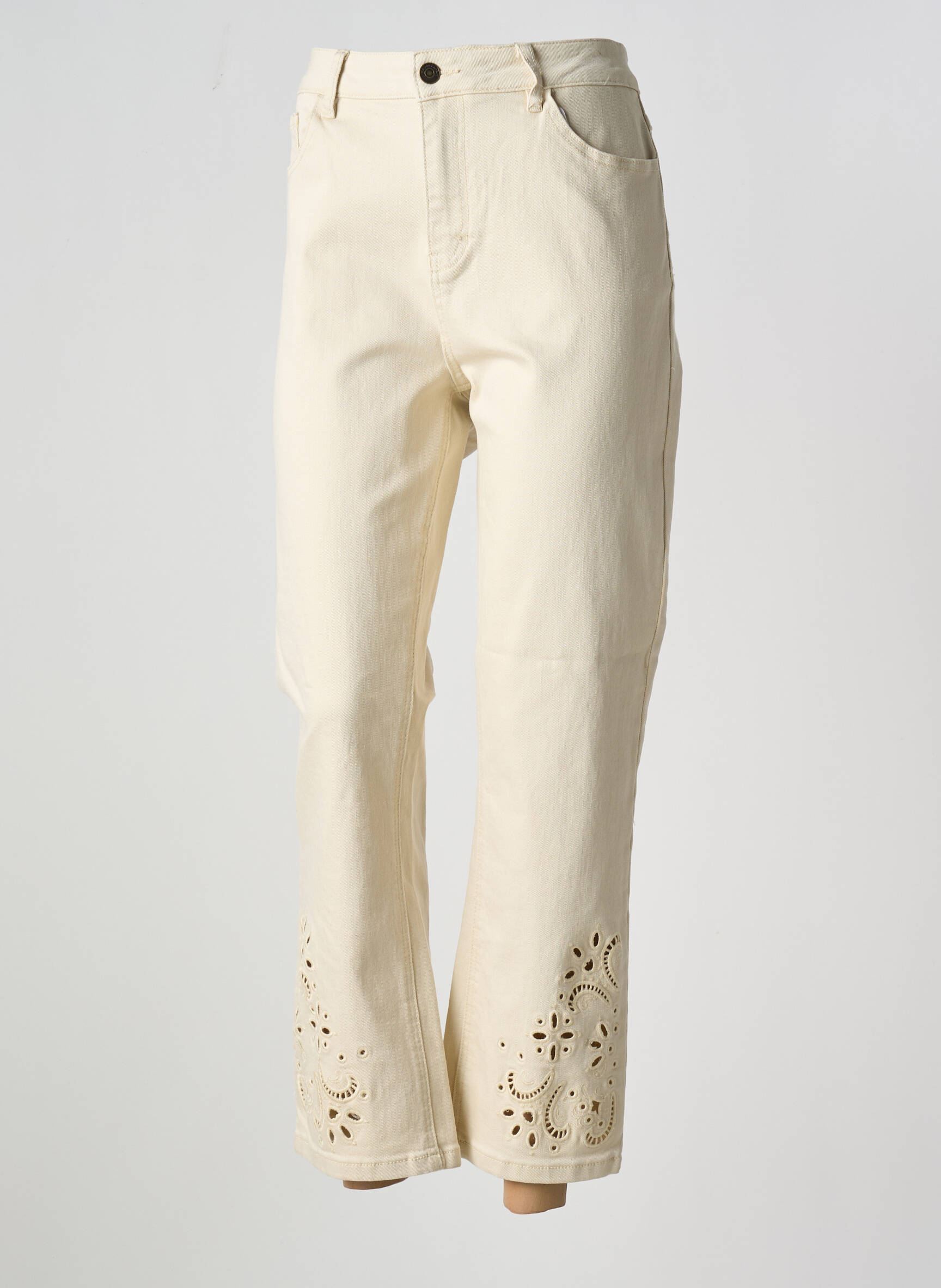 Craquez pour ce jeans coupe droite de la marque MAISON CAPTAIN, une véritable bonne affaire pour celles qui veulent ajouter une touche de style à petit prix à leur dressing. Ce modèle couleur écru séduit par sa coupe droite intemporelle et ses détails ajourés élégants au bas des jambes, apportant une note féminine originale qui fait toute la différence. Il se porte aussi bien avec des baskets pour un look décontracté qu’avec des sandales pour une allure plus habillée, tout en profitant d’un prix malin difficile à trouver ailleurs.