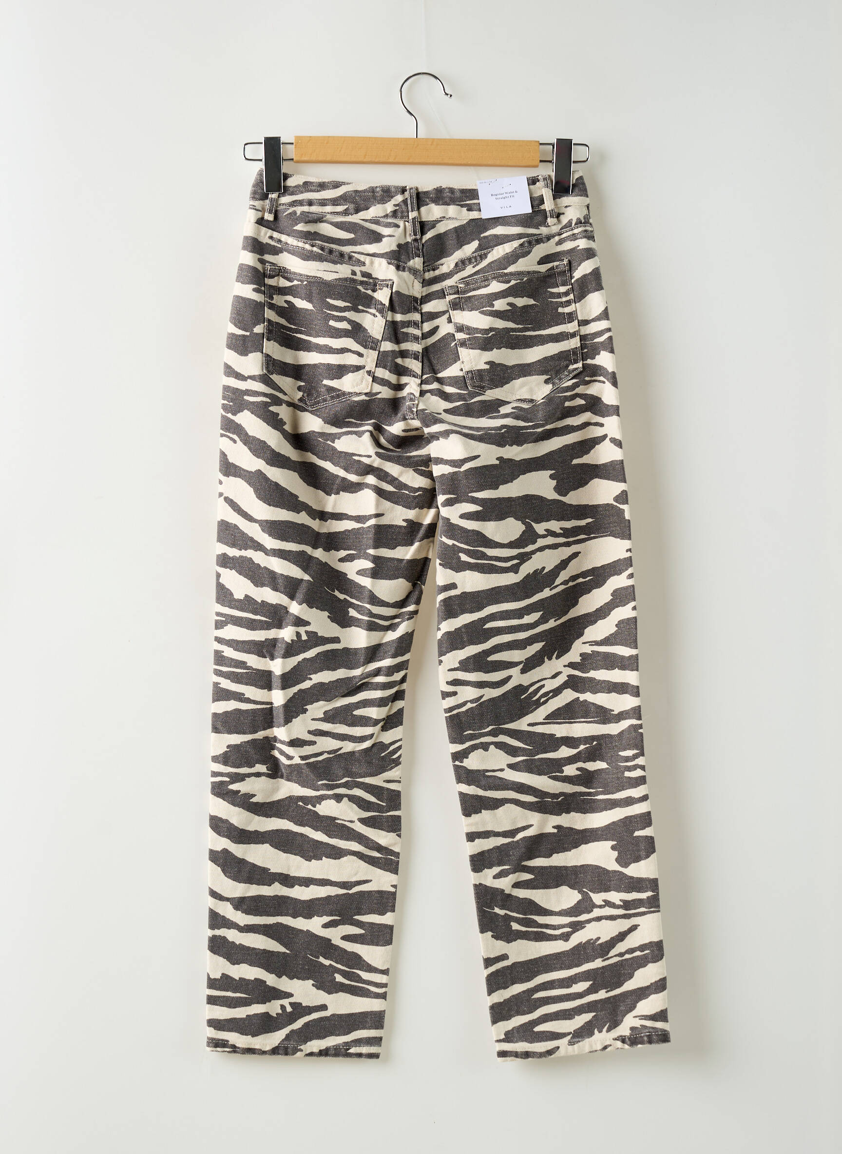 Jeans Coupe Droite Vila Beige Taille Haute