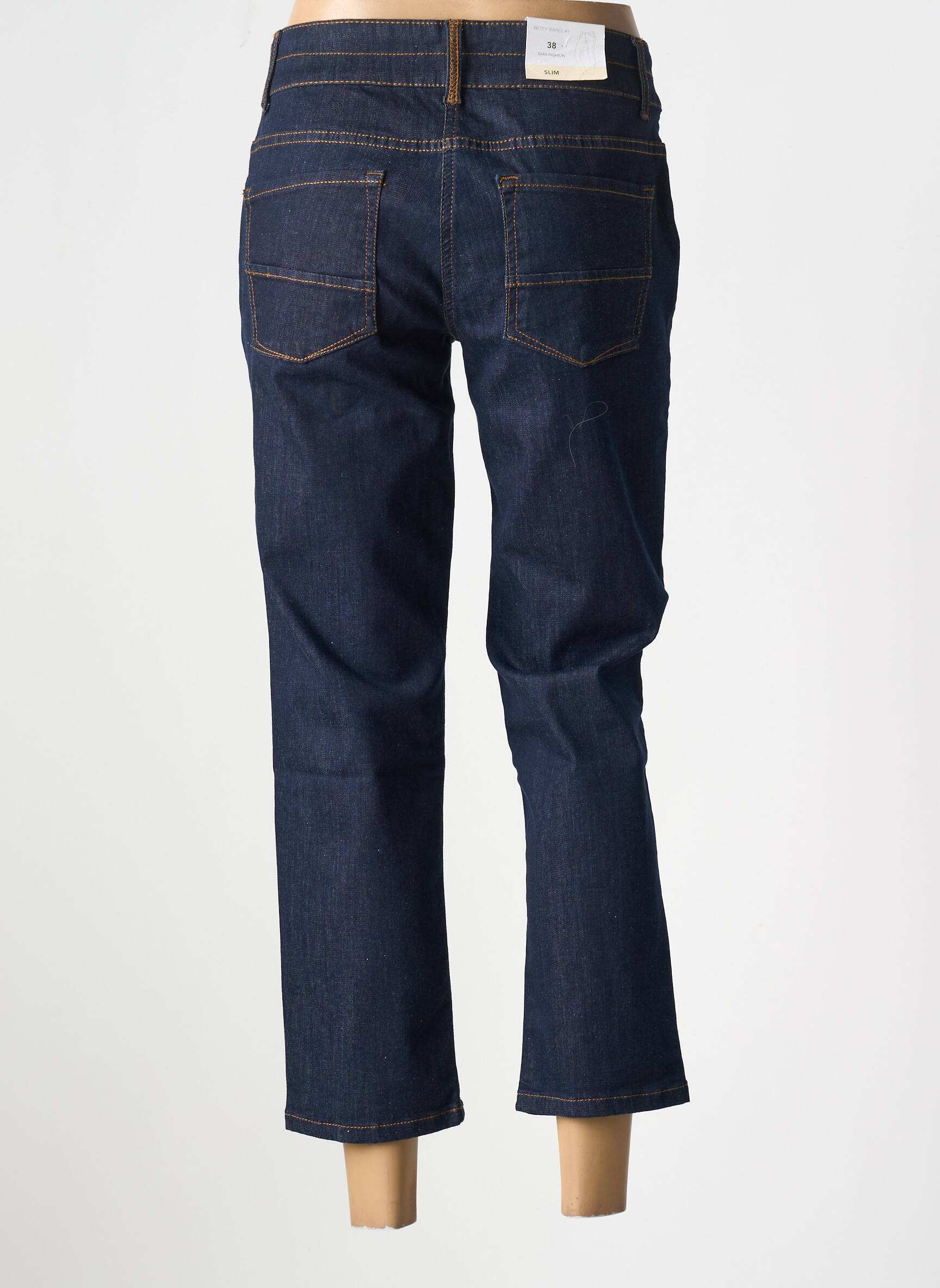 Profitez d'une occasion à saisir avec ce jeans coupe slim pour femme signé BETTY BARCLAY, une pièce incontournable à prix mini pour sublimer votre quotidien. Sa coupe ajustée épouse la silhouette tout en conservant un confort optimal, tandis que sa teinte bleu denim classique s'accorde facilement avec toutes vos envies de looks. Souligné par des surpiqûres contrastées et muni d'une double fermeture à boutons, ce pantalon vous offre une allure moderne et féminine à petit prix, parfait pour donner du style à votre dressing sans vous ruiner.