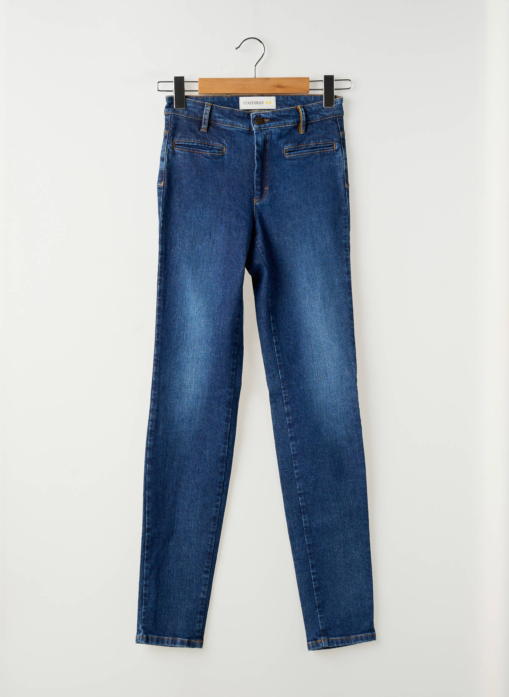 Jeans Coupe Slim Couturist Bleu Taille Haute