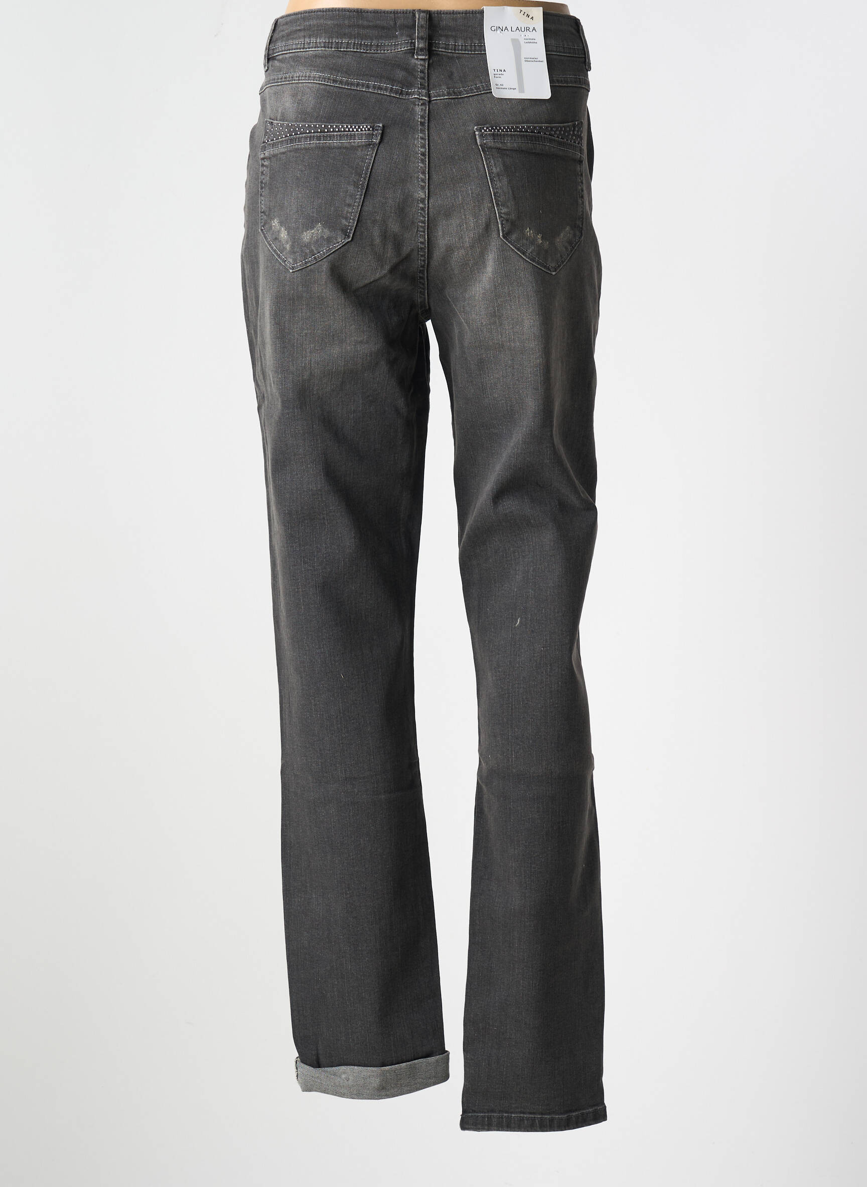 Profitez d’un bon plan mode avec ce jeans coupe slim de la marque GINA LAURA, une pièce incontournable à prix mini pour composer une tenue tendance sans se ruiner. Ce modèle présente une teinte gris foncé subtilement délavée sur le devant, pour un effet usé très actuel, et dispose d’une coupe ajustée qui met la silhouette en valeur tout en assurant un grand confort. Les finitions soignées, la taille classique et les poches discrètes en font un allié parfait du quotidien, aussi facile à associer avec des baskets qu’avec des chaussures plus habillées. Saisissez cette belle opportunité pour enrichir votre garde-robe avec un jean stylé à prix déstocké.