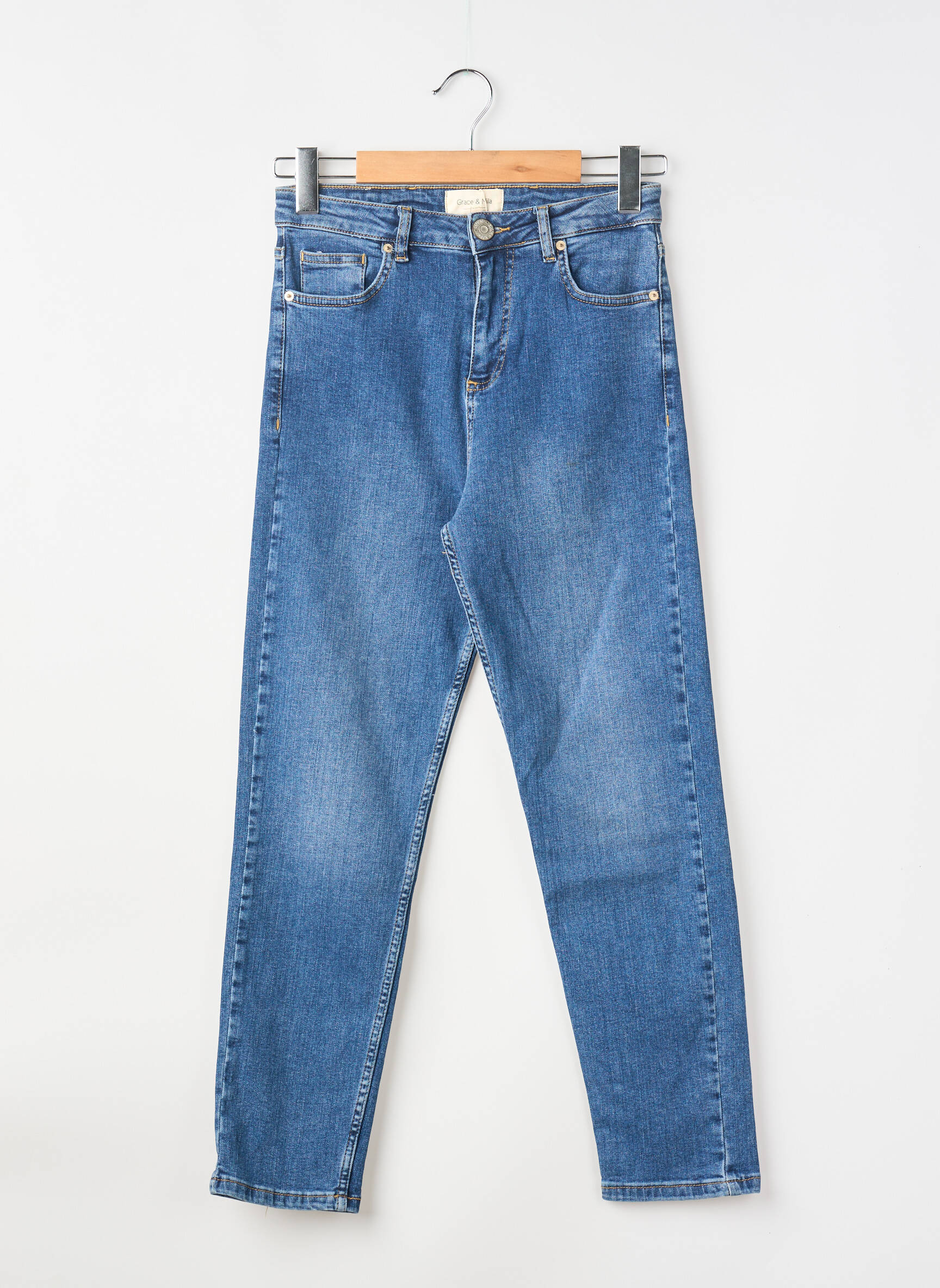 Craquez pour ce jeans coupe slim de la marque GRACE & MILA, un incontournable à prix irrésistible pour sublimer votre silhouette au quotidien sans vous ruiner. Sa coupe ajustée met en valeur vos jambes tout en offrant un confort optimal, et son coloris bleu intemporel s’adapte facilement à tous vos looks, du plus décontracté au plus chic. Profitez de ce bon plan pour ajouter une pièce tendance et facile à porter à votre dressing, idéale pour faire rimer mode et économies !