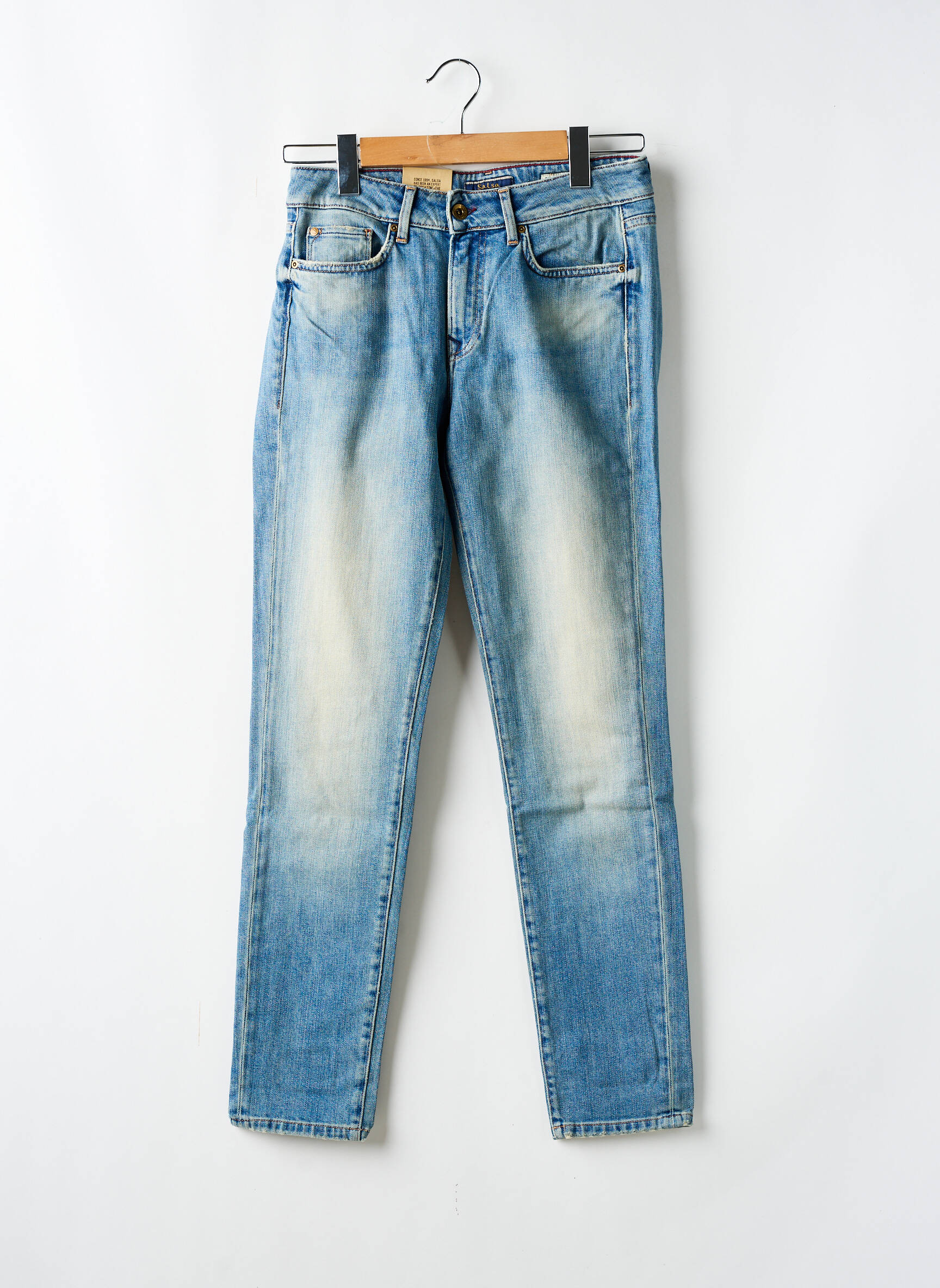 Profitez d’une vraie affaire avec ce jeans coupe slim pour femme signé SALSA, qui combine petit prix et style tendance. Son délavage clair offre une touche casual parfaite pour un look quotidien frais, tandis que la coupe slim flatte la silhouette tout en restant confortable grâce à sa matière souple. Idéal pour celles qui veulent s’offrir une pièce de marque sans se ruiner, ce jeans est le bon plan à ne pas laisser passer dans votre dressing.