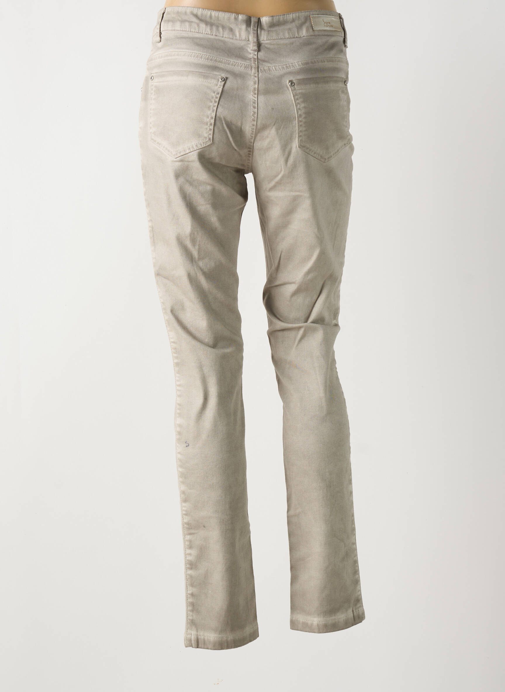 Craquez pour ce jeans coupe slim de la marque SIGNE NATURE, une véritable occasion à saisir pour renouveler votre dressing à prix doux. Sa teinte beige claire s’associe facilement à toutes vos tenues, tandis que sa coupe ajustée sublime la silhouette sans sacrifier le confort. Idéal pour toutes vos envies de look casual chic, ce jeans tendance et pas cher vous permet de faire des économies sans renoncer au style. Saisissez l’opportunité de profiter d’un jean de marque à petit prix sur notre site de déstockage.