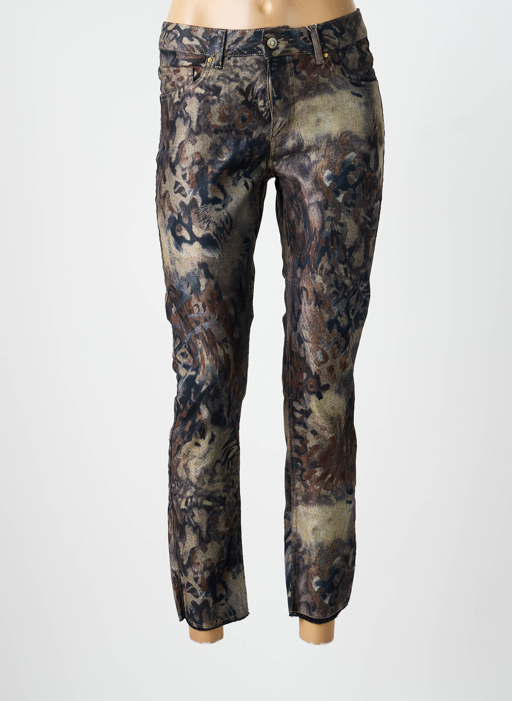 Craquez pour ce jeans coupe slim de la marque Signe Nature, l'occasion idéale de vous offrir une pièce tendance à prix tout doux. Son motif original façon camouflage chic, dans des tons mêlant bleu, beige et marron, apporte une touche sophistiquée et audacieuse à votre dressing, parfait pour celles qui aiment se démarquer sans se ruiner. Sa coupe près du corps sublime la silhouette tout en restant confortable, ce qui en fait un indispensable pour renouveler votre look en réalisant de belles économies.