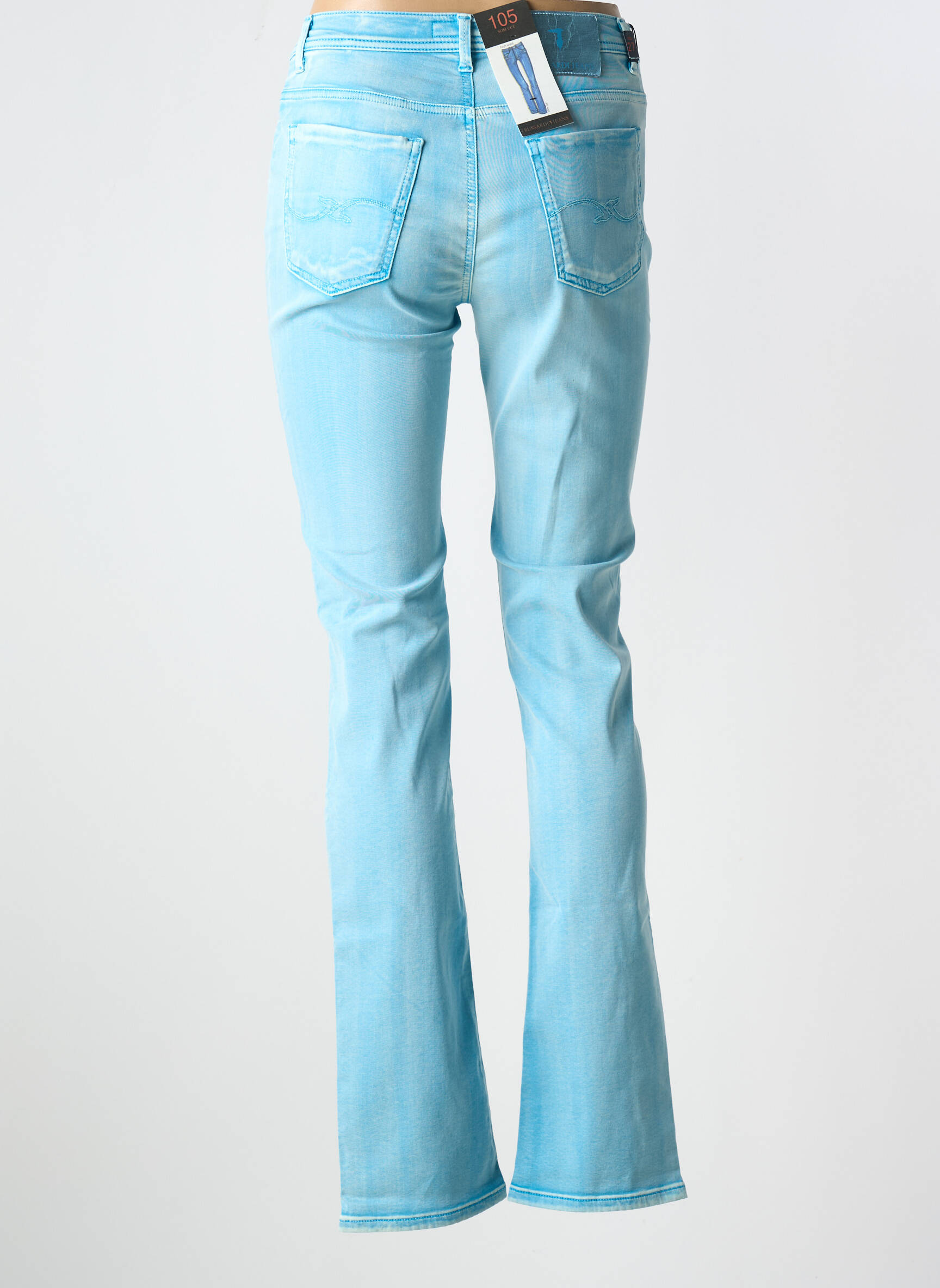 Profitez d'une occasion unique de vous offrir ce jeans coupe slim pour femme signé Trussardi Jeans à prix réduit, parfait pour allier style et économies au quotidien. La coupe près du corps souligne délicatement la silhouette tandis que la teinte bleu clair apporte une touche de fraîcheur et de modernité à vos tenues, que ce soit avec une chemise chic ou un t-shirt décontracté. Ce modèle offre des finitions soignées avec ses poches classiques et sa fermeture boutonnée, le tout dans un esprit tendance immanquable à prix tout doux.