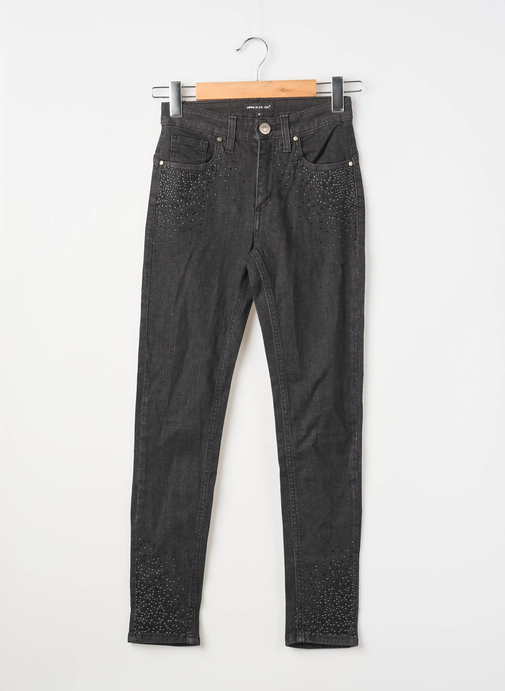 Saisissez l’occasion de vous offrir ce jeans skinny signé ASTRID BLACK LABEL à prix avantageux pour réinventer vos looks du quotidien sans vous ruiner. Sa coupe ajustée sublime la silhouette tandis que sa teinte noire légèrement délavée, rehaussée de subtils détails brillants sur les poches et aux chevilles, apporte une touche tendance et féminine idéale pour accompagner toutes vos envies mode du moment.