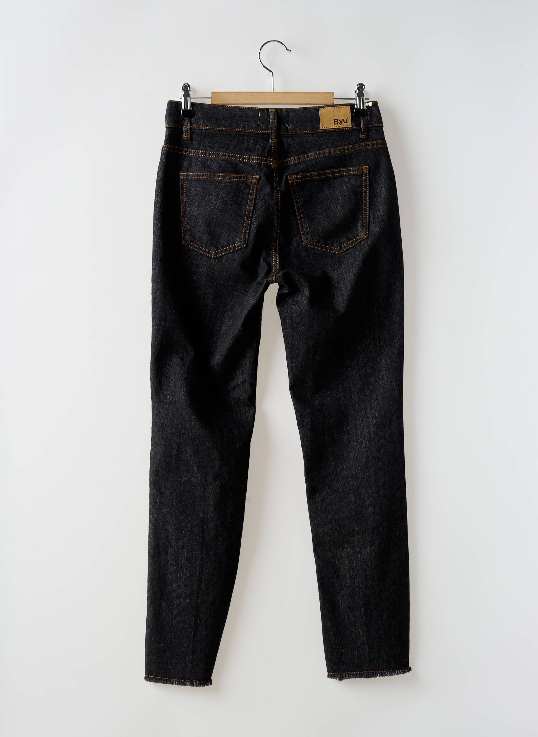 Imaginez un jean qui épouse vos courbes comme une seconde peau tout en affichant un style audacieux et contemporain ; ce skinny B.YU pour femme en denim noir profond se distingue par ses finitions soignées avec des coutures contrastantes caramel qui soulignent la silhouette, une taille traditionnelle avec passants pour ceinture, des poches classiques à l’avant comme à l’arrière, et une touche d’originalité avec un ourlet brut légèrement effiloché qui apporte une allure décontractée et moderne.