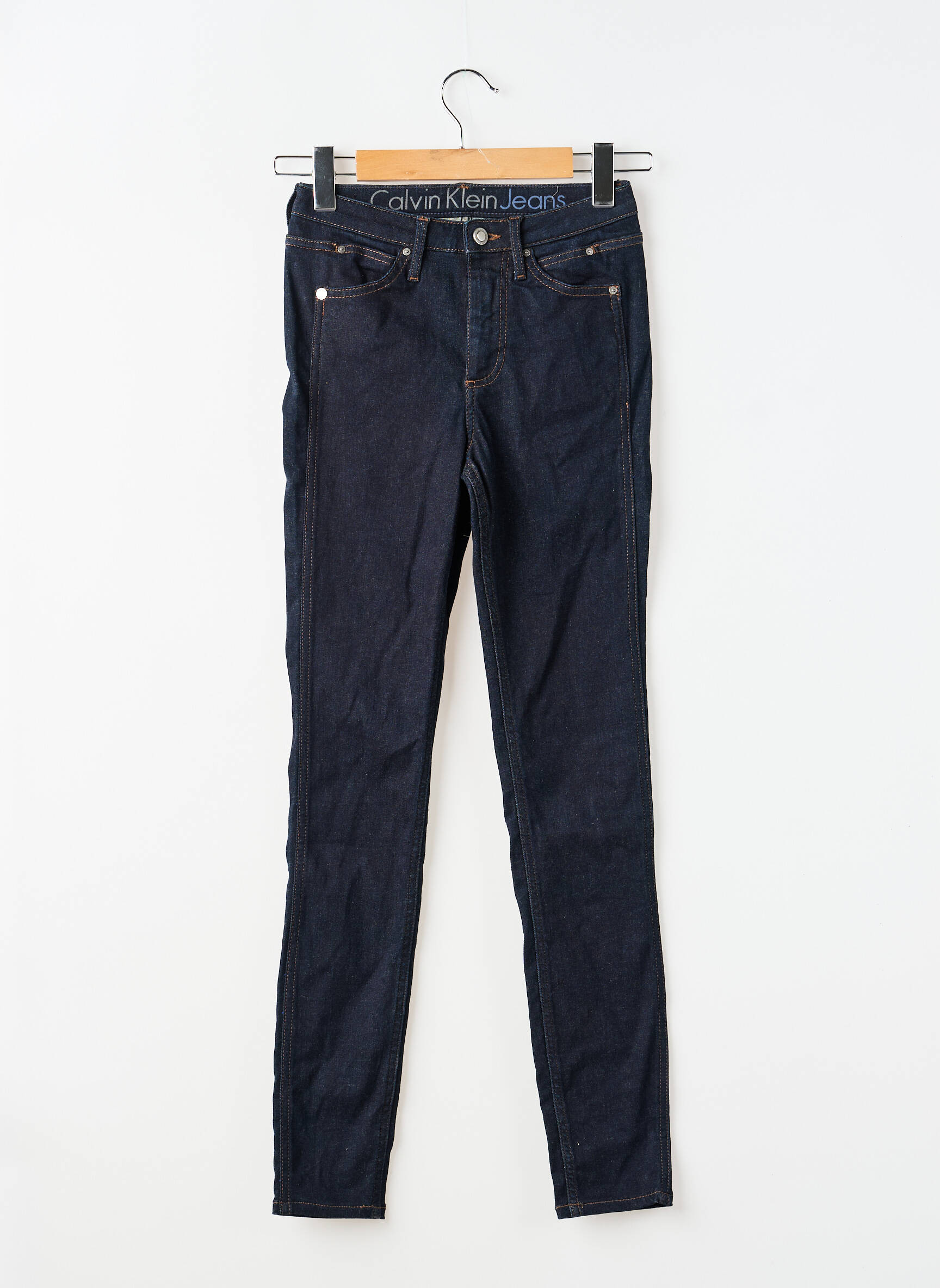 Ce jean Calvin Klein est un jean skinny pour femmes qui s&rsquo.