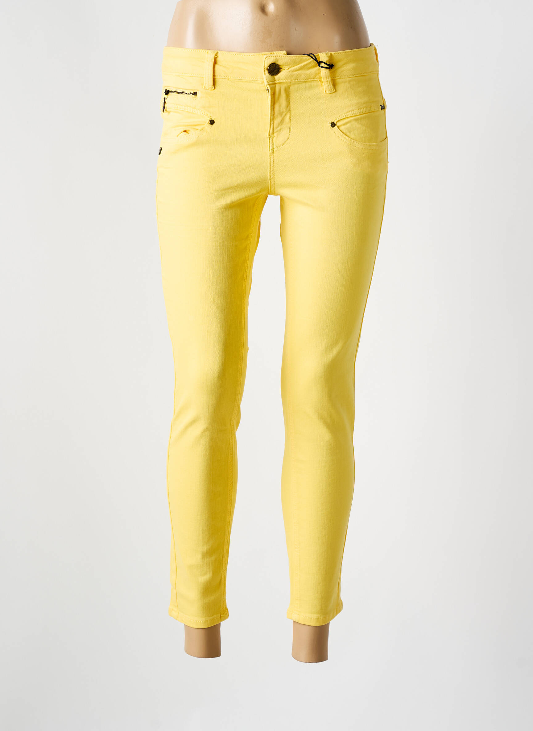 Profitez d’une vraie bonne affaire avec ce jeans skinny pour femme signé FREEMAN T.PORTER, proposé à un prix tout doux sur notre site de déstockage. Sa coupe ajustée mettra en valeur toutes les silhouettes, tandis que sa couleur jaune pleine d’énergie apporte une touche de pep’s unique à votre dressing. Les finitions zippées sur les poches avant ajoutent une note moderne et tendance, parfait pour celles qui aiment mixer style et économie sans compromis. Ce jeans est l’occasion rêvée de renouveler votre look avec une pièce originale sans vous ruiner.