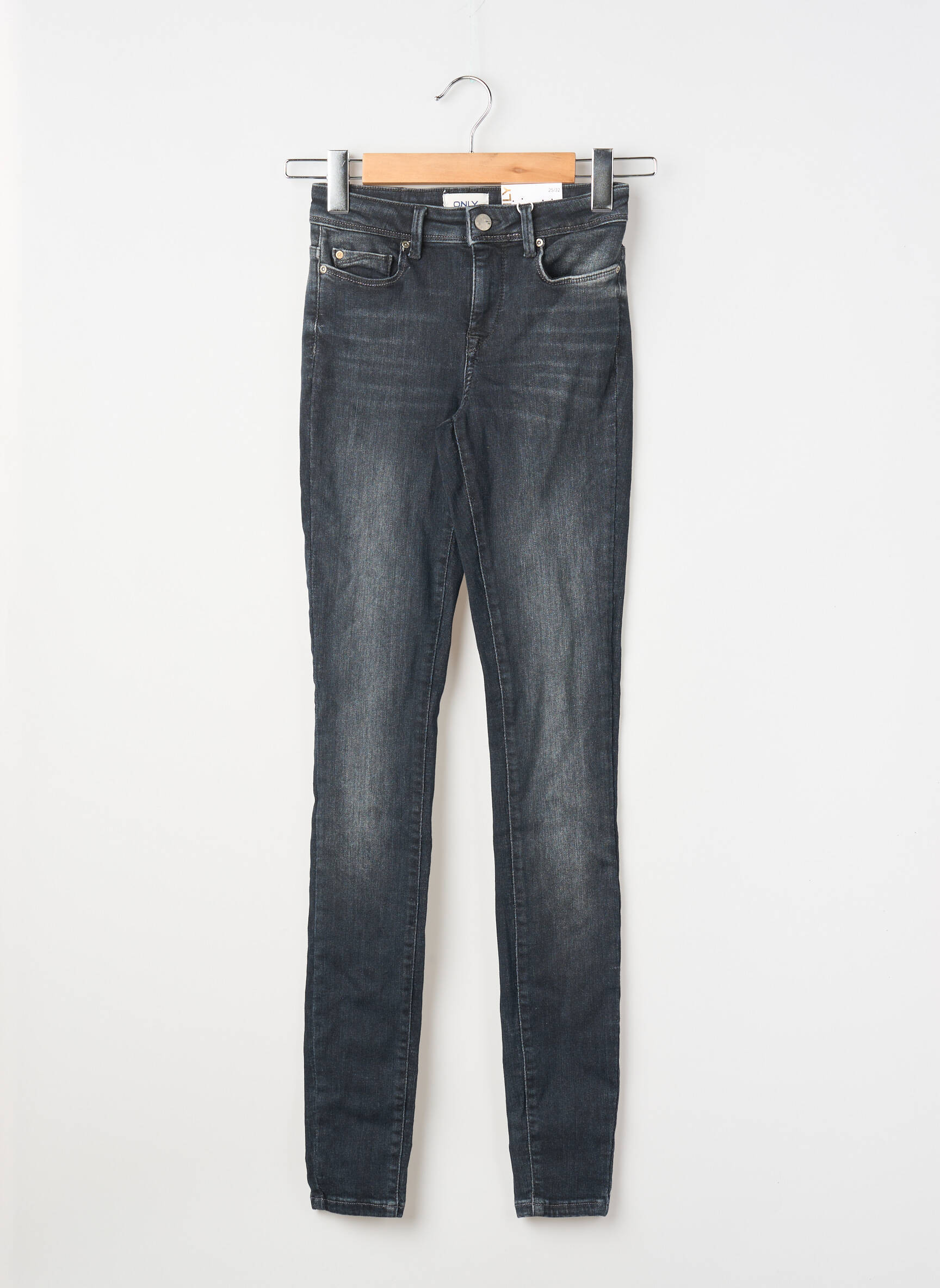 Profitez d’une belle opportunité pour renouveler votre dressing avec ce jeans skinny pour femme de la marque ONLY, affiché à prix tout doux. Ce modèle, à la coupe près du corps et à la teinte noire légèrement délavée, assure une silhouette élancée tout en s’adaptant facilement à toutes vos tenues, qu’elles soient décontractées ou plus habillées. Son effet légèrement usé sur le devant apporte une touche moderne et tendance, parfait pour un look actuel sans se ruiner.