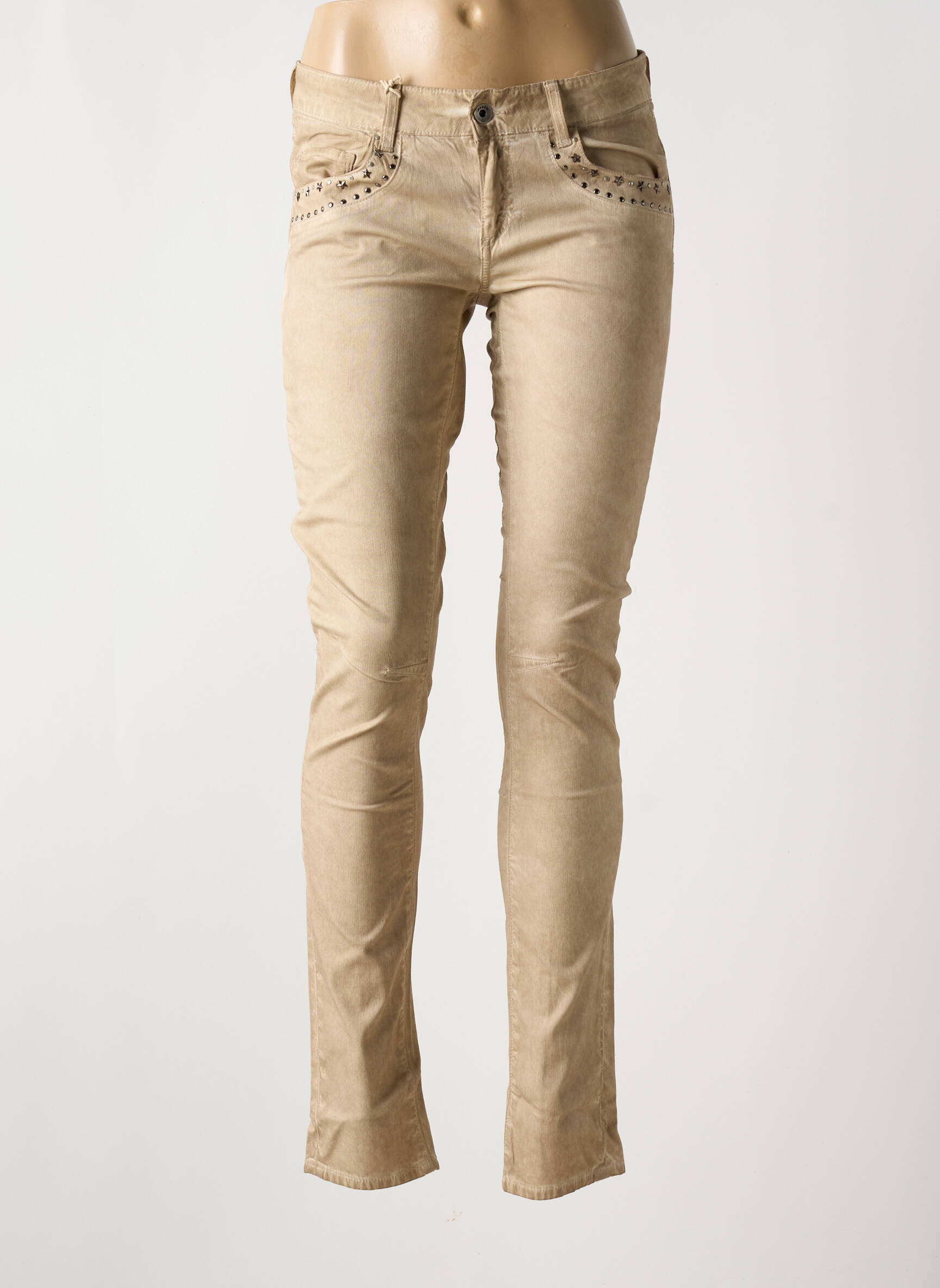 Profitez d’un super bon plan avec ce jeans skinny de la marque SCHOOL RAG, qui se distingue par sa coupe ajustée et sa teinte beige lumineuse facile à assortir. Ce modèle légèrement délavé met en valeur les jambes tout en offrant une touche de fantaisie avec ses petits clous décoratifs sur les poches avant, ajoutant un esprit tendance à vos tenues du quotidien. Sa matière douce et sa taille classique en font un indispensable du dressing à prix mini, idéal pour se faire plaisir sans se ruiner.