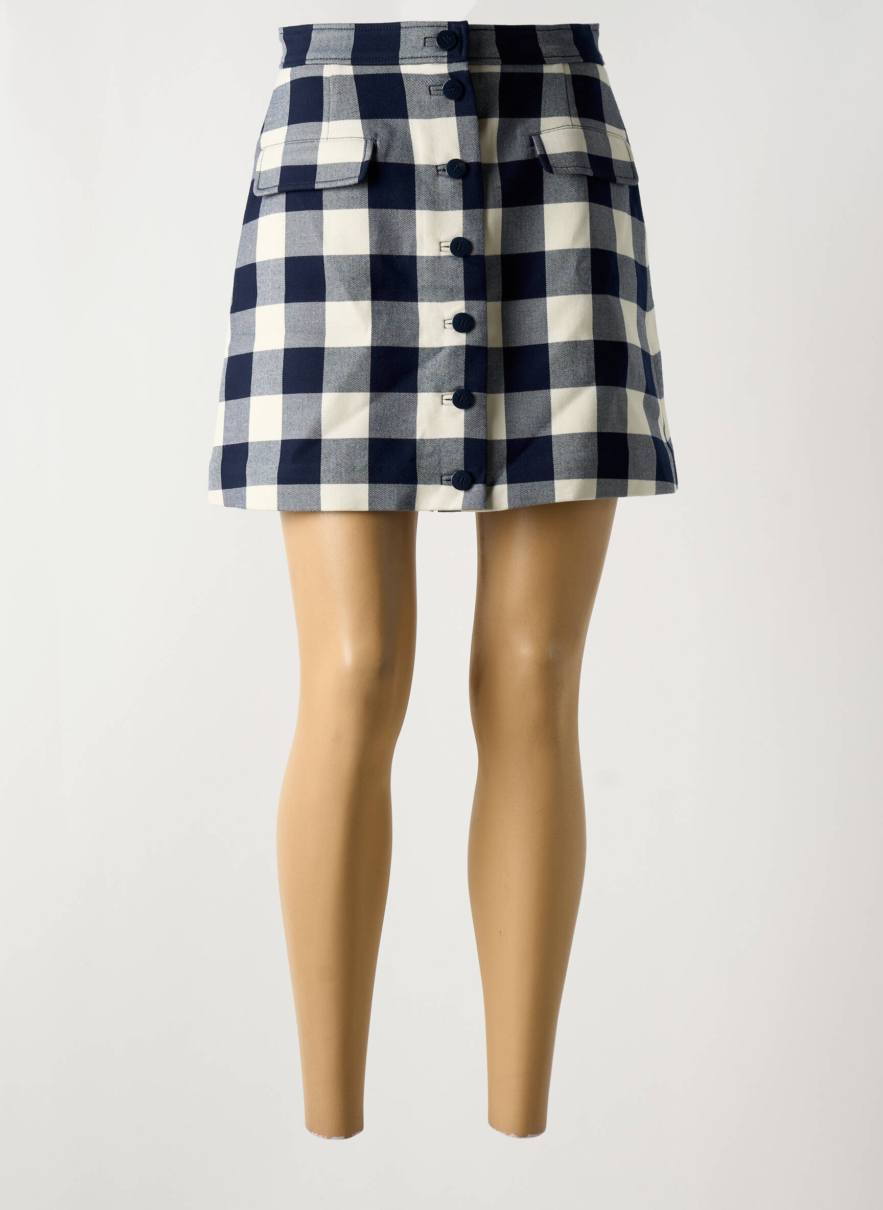 Craquez pour cette jupe courte IDANO à petit prix, idéale pour apporter une touche tendance à votre dressing tout en faisant des économies. Son motif vichy bleu marine et blanc lui confère un style frais et rétro très actuel, tandis que la coupe légèrement évasée et les poches à rabat sur le devant allient praticité et féminité. Les boutons apparents ajoutent une note chic qui fait toute la différence, parfait pour un look moderne sans vous ruiner.