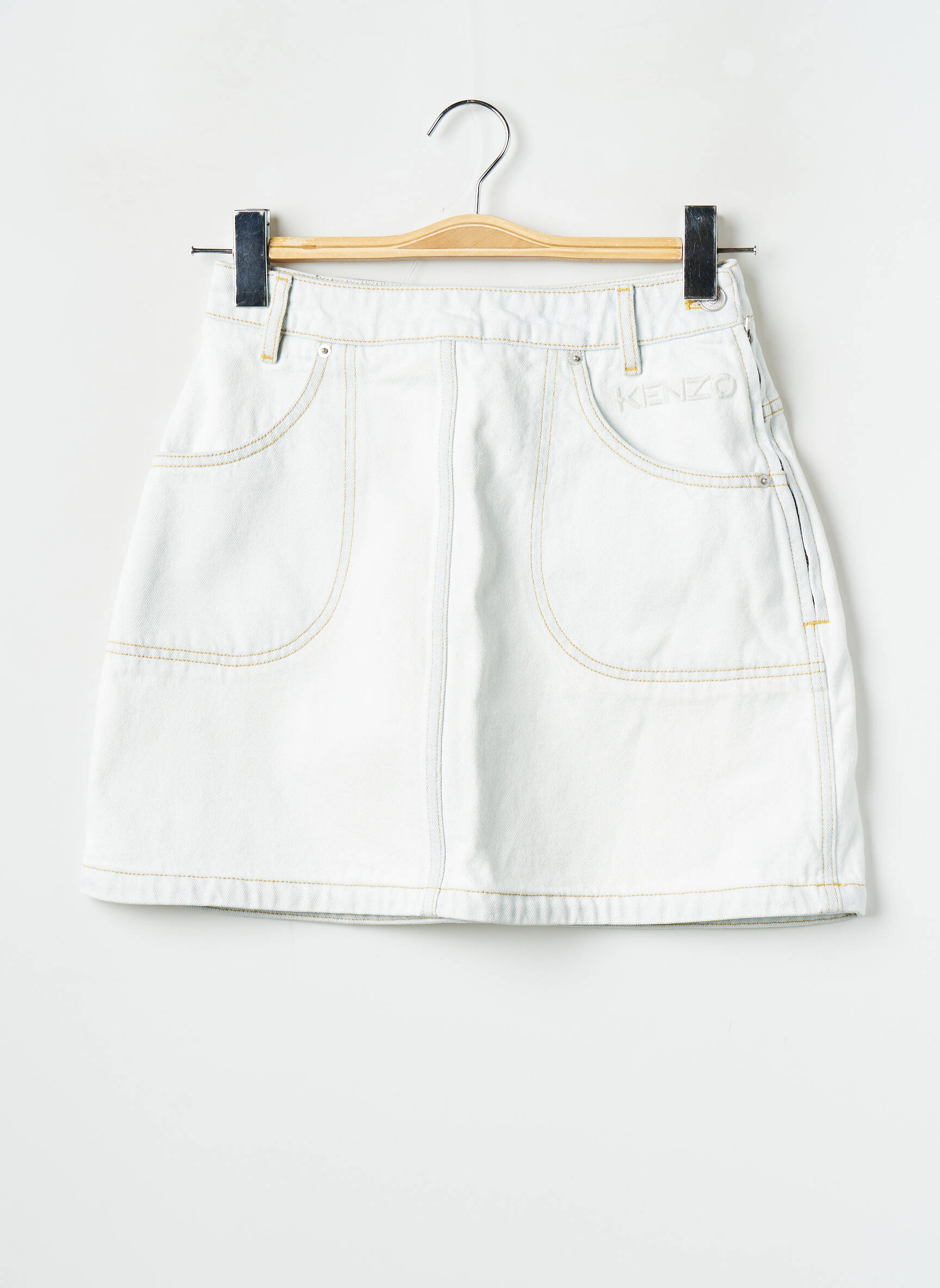 Faites-vous plaisir sans vous ruiner avec cette jupe courte KENZO, une pièce ultra tendance qui allie le style iconique de la marque à un prix mini. Son look minimaliste et sa coupe légèrement trapèze mettent en valeur la silhouette tout en restant faciles à porter au quotidien, tandis que les surpiqûres contrastées et les grandes poches apportent une touche casual et moderne. Une vraie opportunité d’adopter une marque prestigieuse à petit prix pour dynamiser votre dressing d’été.