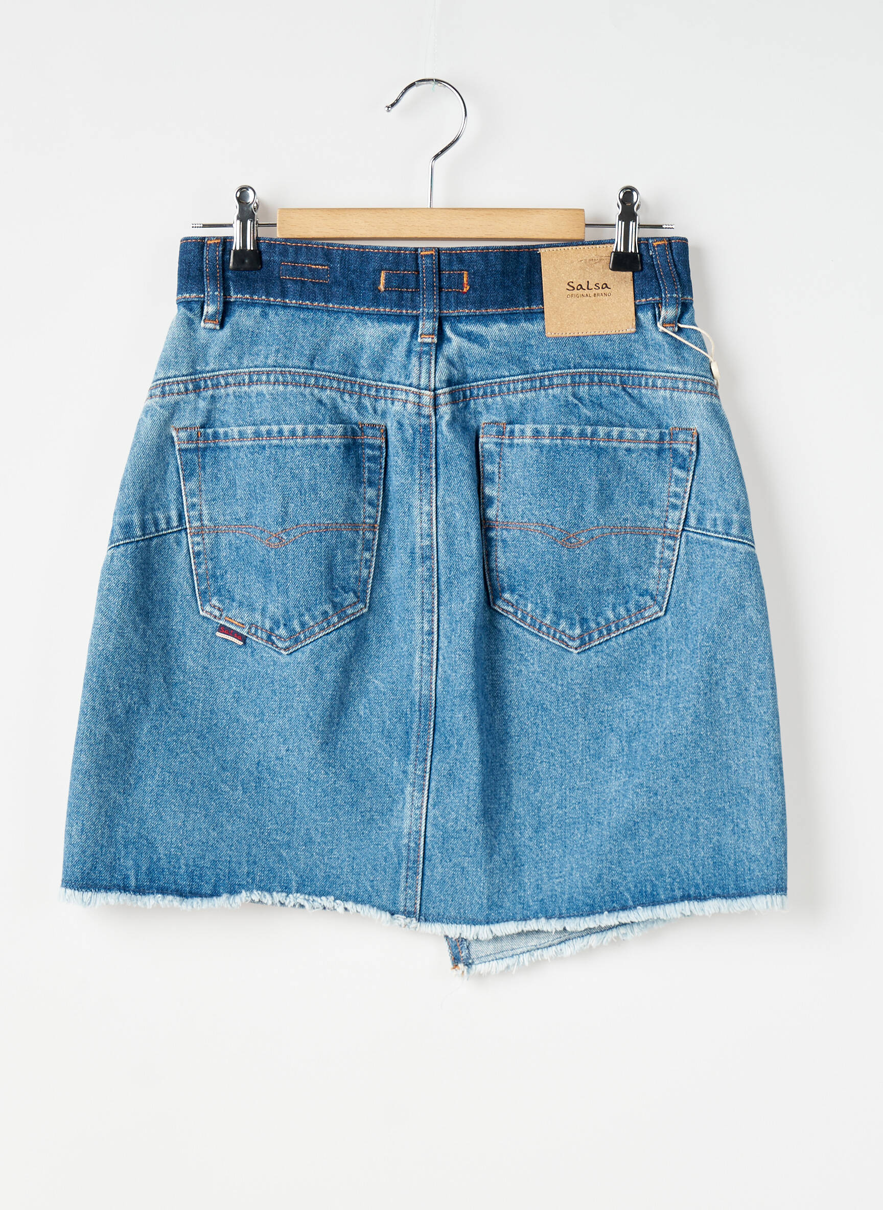 Craquez pour cette jupe courte en jean de la marque SALSA, une pièce tendance à petit prix qui mise sur l’originalité avec sa coupe asymétrique et ses finitions effilochées. Sa taille marquée et ses poches à l’avant lui donnent un esprit décontracté parfait pour ajouter une touche de style à un look quotidien tout en réalisant de belles économies.