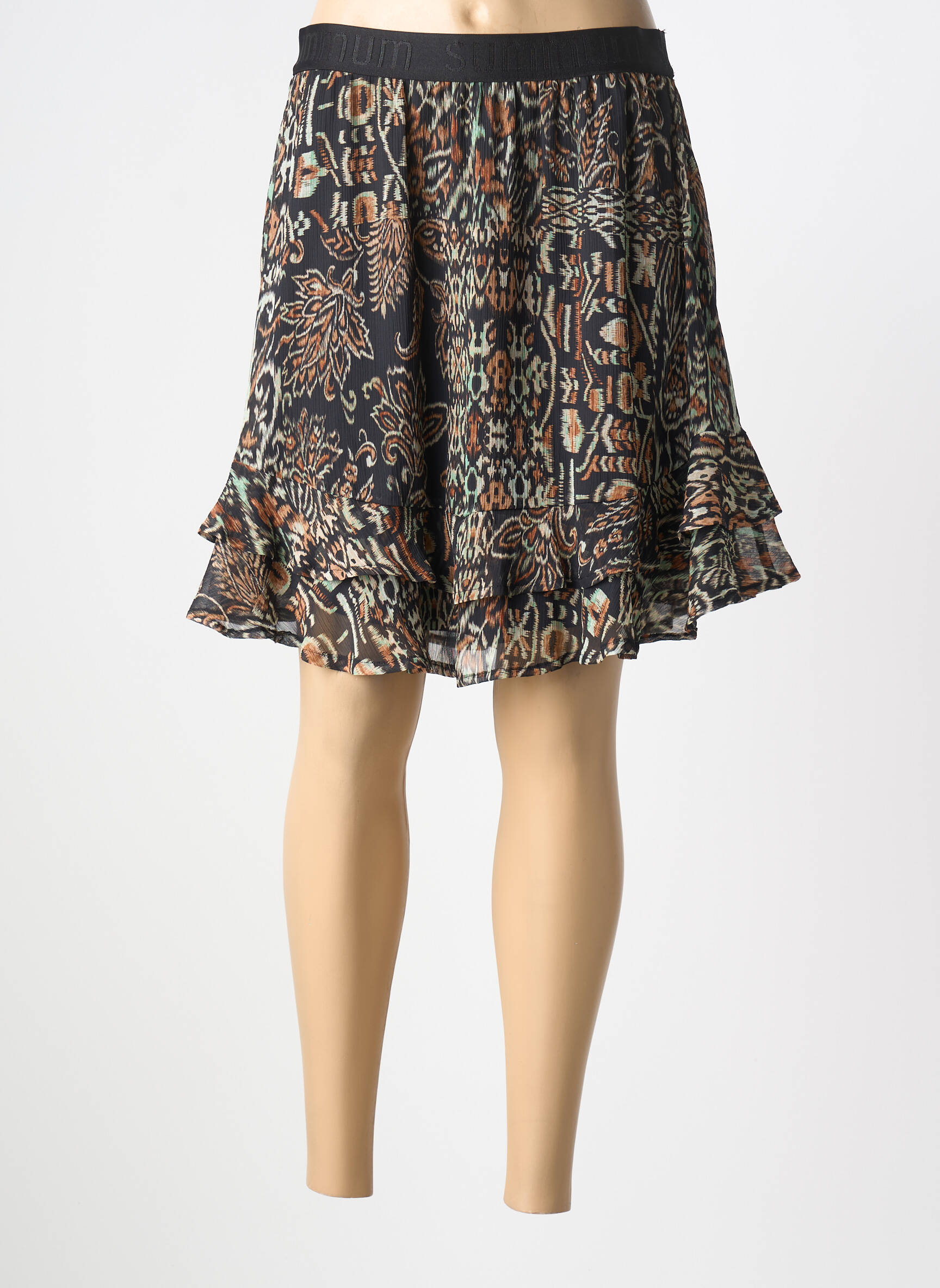Craquez pour cette jupe courte SUMMUM, une pièce tendance à prix mini qui donne du pep’s à votre garde-robe sans vous ruiner. Son motif graphique original dans des tons chauds et contrastés capte le regard, tandis que sa taille élastiquée assure un confort au quotidien. Les petits volants sur le bas ajoutent une touche féminine et dynamique, parfaite pour composer une tenue estivale ou décontractée. Profitez d’un vrai bon plan sur cette jupe coup de cœur, à shopper sans hésiter !