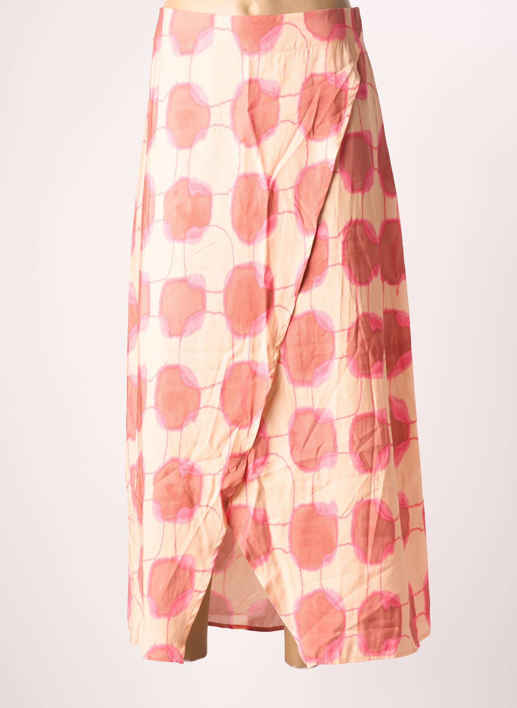 Craquez pour cette jupe longue B.YOUNG à prix mini et apportez une touche de fraîcheur à votre dressing avec son imprimé géométrique dans les tons roses et brique sur fond clair, son joli effet portefeuille légèrement croisé sur le devant et sa coupe fluide parfaite pour les beaux jours ; une pièce tendance qui allie style et petit prix, idéale pour profiter de la mode sans se ruiner.