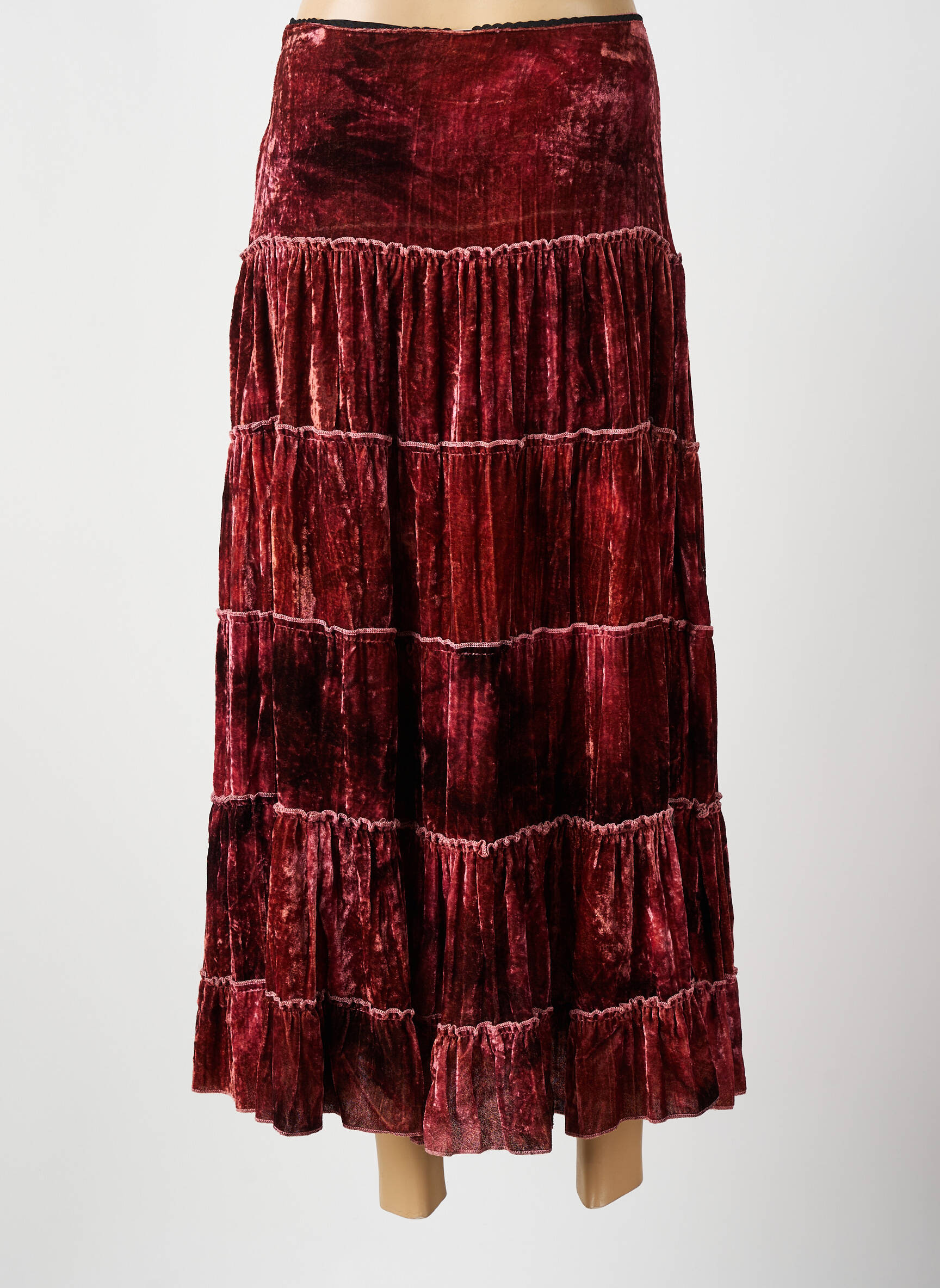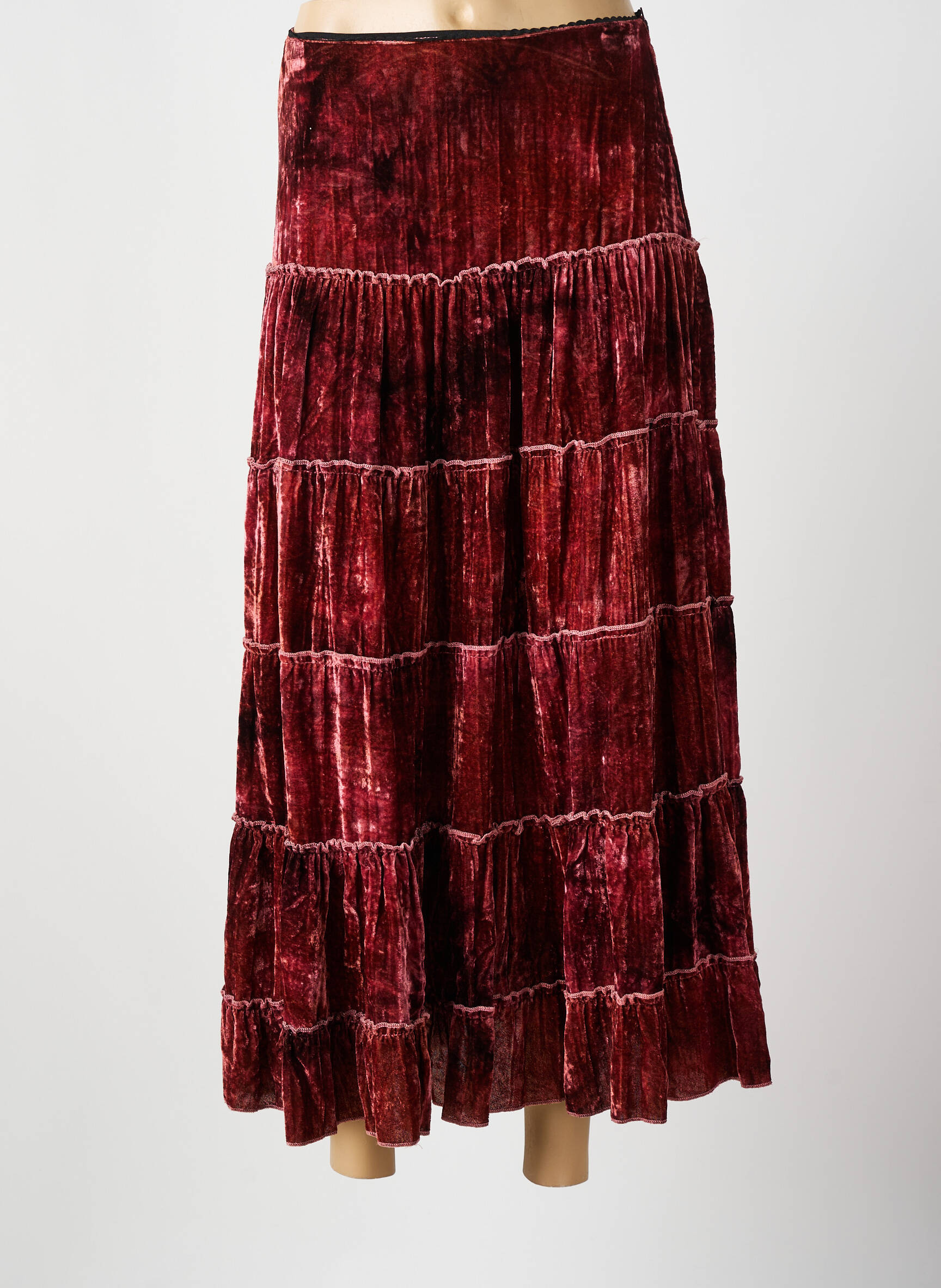 Craquez pour cette jupe longue BEVERLY pour femme, une occasion idéale de se faire plaisir sans se ruiner grâce à notre sélection à prix mini. Avec sa texture velours et sa belle teinte rouge profond, elle offre un tombé élégant et des jeux de matières sophistiqués tout en apportant une touche glamour à votre dressing. Ses larges volants apportent du mouvement et de l’originalité, parfait pour composer des looks chic à petit prix.