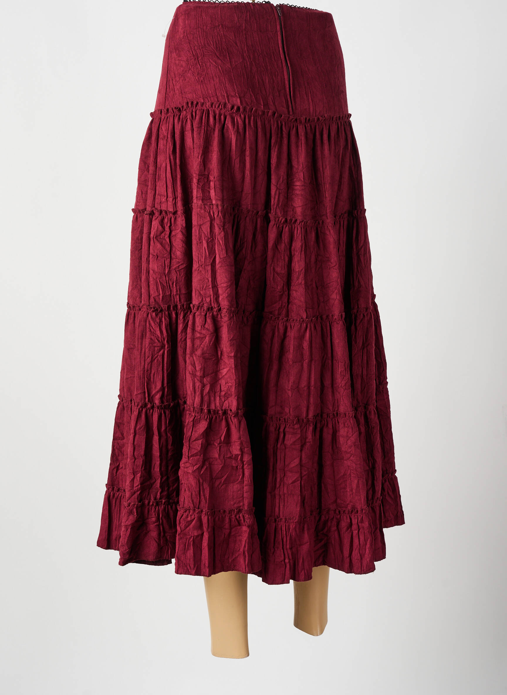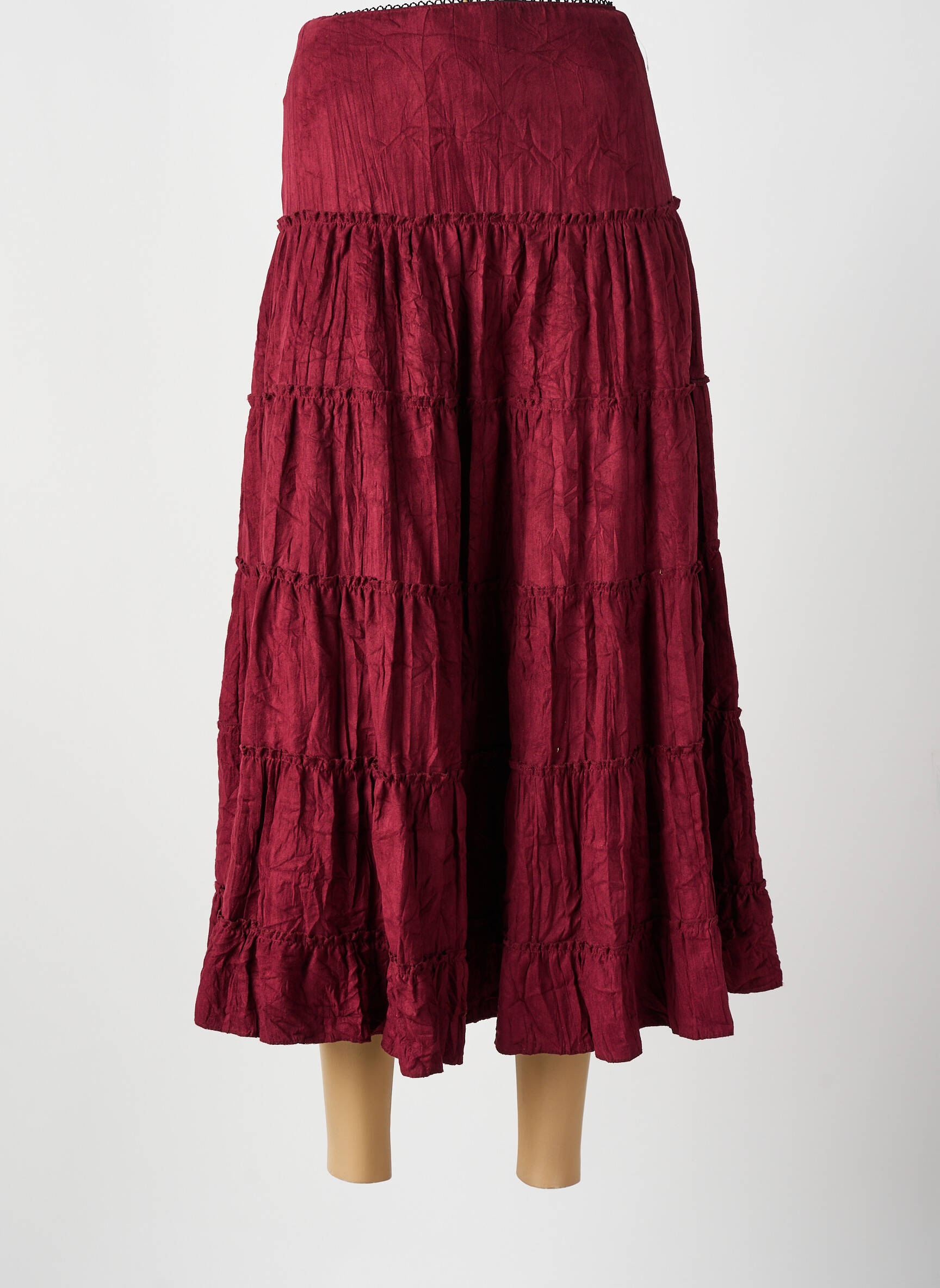 Profitez d'une élégance à petit prix avec cette jupe longue BEVERLY pour femme, qui séduit par sa teinte bordeaux profonde et son tissu subtilement froissé, doté de volants légers pour un tombé bohème et très tendance ; idéale pour composer vos tenues estivales tout en réalisant de vraies économies sur le look multi-marques.
