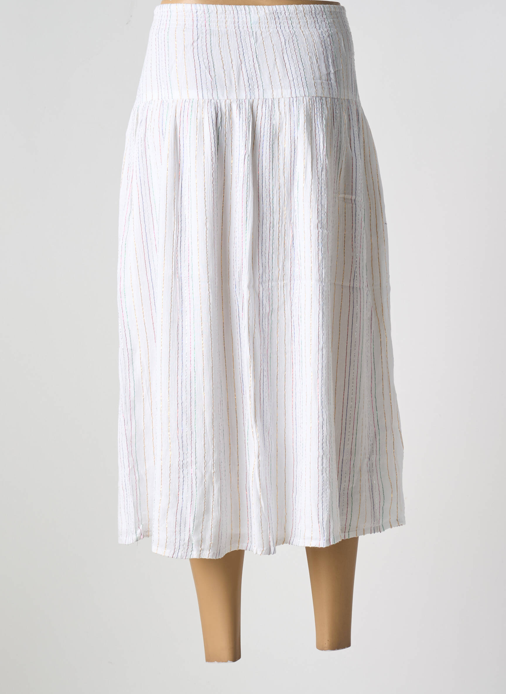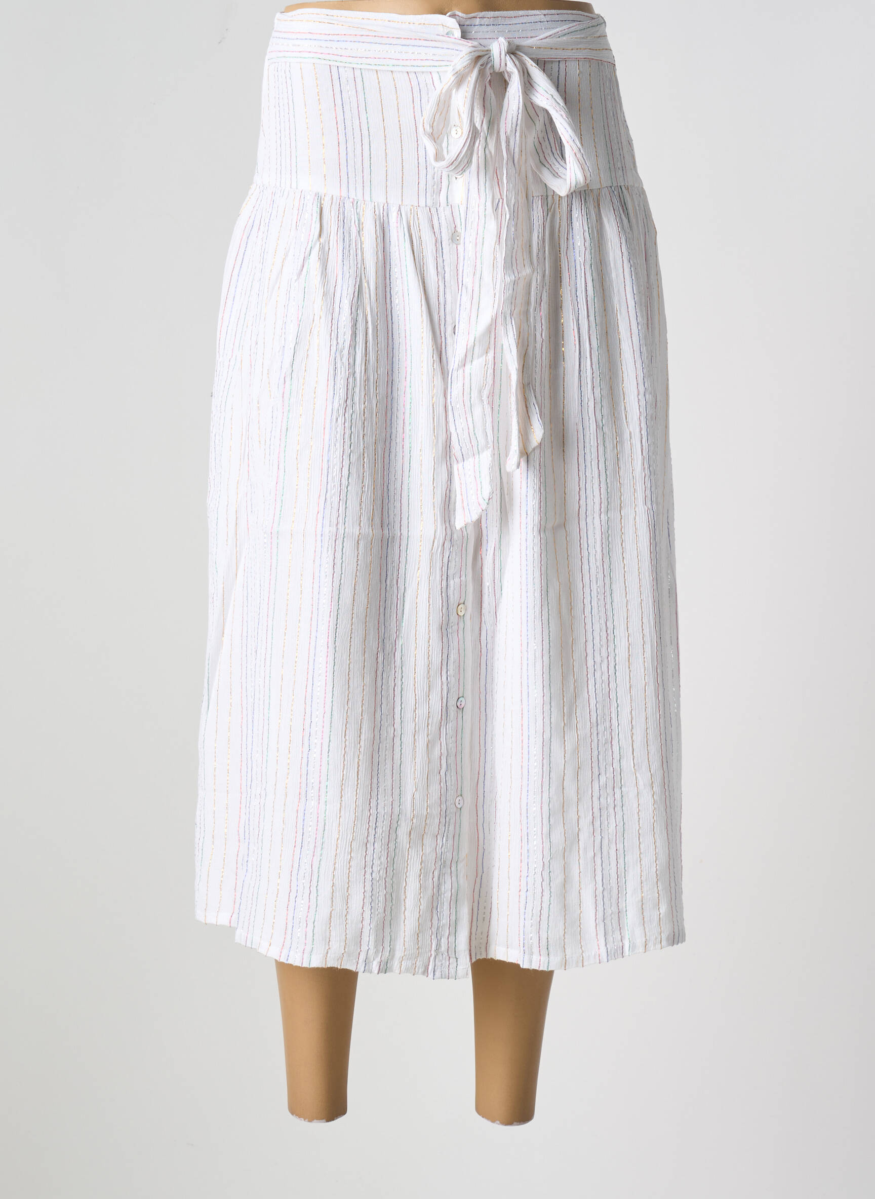 Craquez pour cette jupe longue BIZANCE pour femme à petit prix, parfait pour apporter une touche élégante et décontractée à votre dressing sans vous ruiner. Son tissu léger à fines rayures colorées et sa ceinture à nouer soulignent la taille tout en offrant un tombé fluide ultra féminin, idéal pour les beaux jours ou des looks casual chic à prix malin.