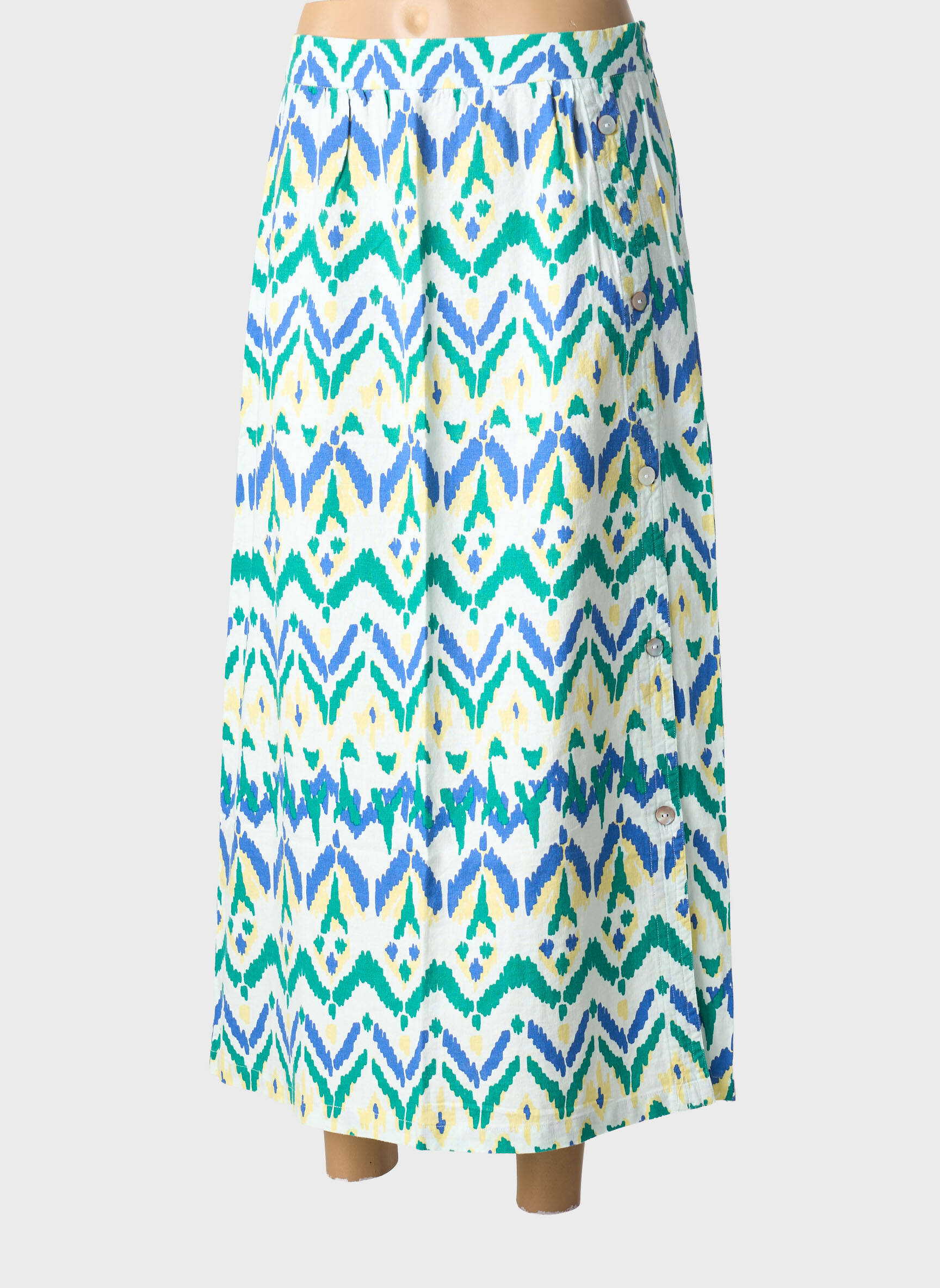 Craquez pour cette jupe longue ÉTYMOLOGIE à prix mini, une pièce colorée idéale pour dynamiser votre garde-robe sans vous ruiner. Son motif graphique dans les tons bleu, vert et jaune apporte une touche estivale et originale, parfaite pour toutes celles qui aiment mixer style et économies. Sa coupe ample offre une allure élégante et décontractée à la fois, un vrai bon plan pour un look tendance au meilleur prix.