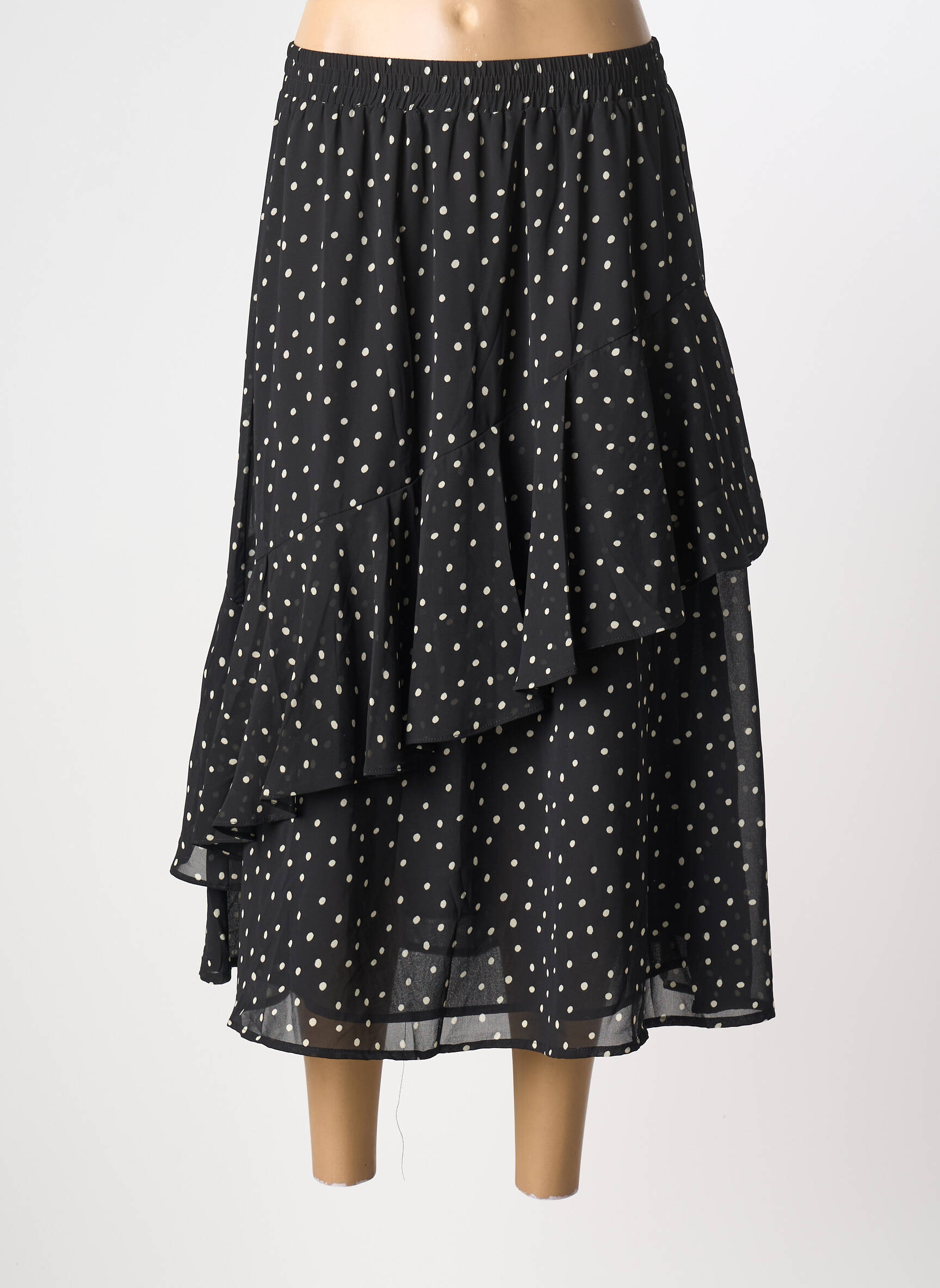 Profitez d’un bon plan mode avec cette jupe longue de la marque KAFFE qui affiche un élégant imprimé à pois blancs sur fond noir, parfait pour ajouter une touche féminine et tendance à votre dressing sans vous ruiner. Sa coupe fluide et le joli jeu de volants apportent un mouvement léger, idéal pour créer facilement des looks chic ou décontractés tout en gardant un style unique à petit prix.