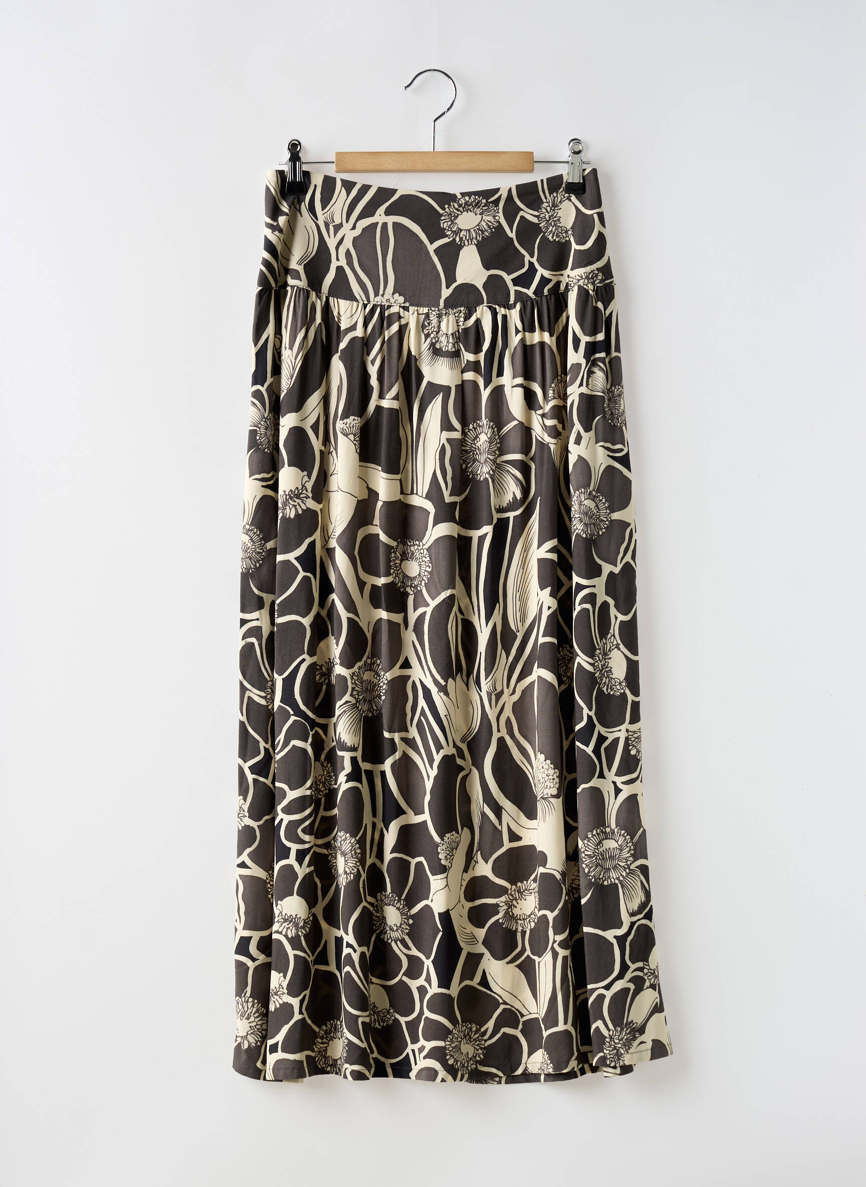 Imaginez-vous en train de flâner dans les rues ensoleillées, vêtue d'une robe longue qui révèle votre sens de l'élégance décontractée. La jupe longue de la marque LE PETIT BAIGNEUR pour femme arbore un imprimé floral saisissant, mêlant des teintes naturelles de beige et de noir qui évoquent l'harmonie du jardin. Sa silhouette fluide et charmante glisse subtilement sur la silhouette, tandis qu'une taille froncée ajoute une touche délicate. Cette pièce versatile se prête à toutes les occasions, que ce soit pour une sortie estivale ou une soirée animée, tout en vous permettant de rester chic sans effort.