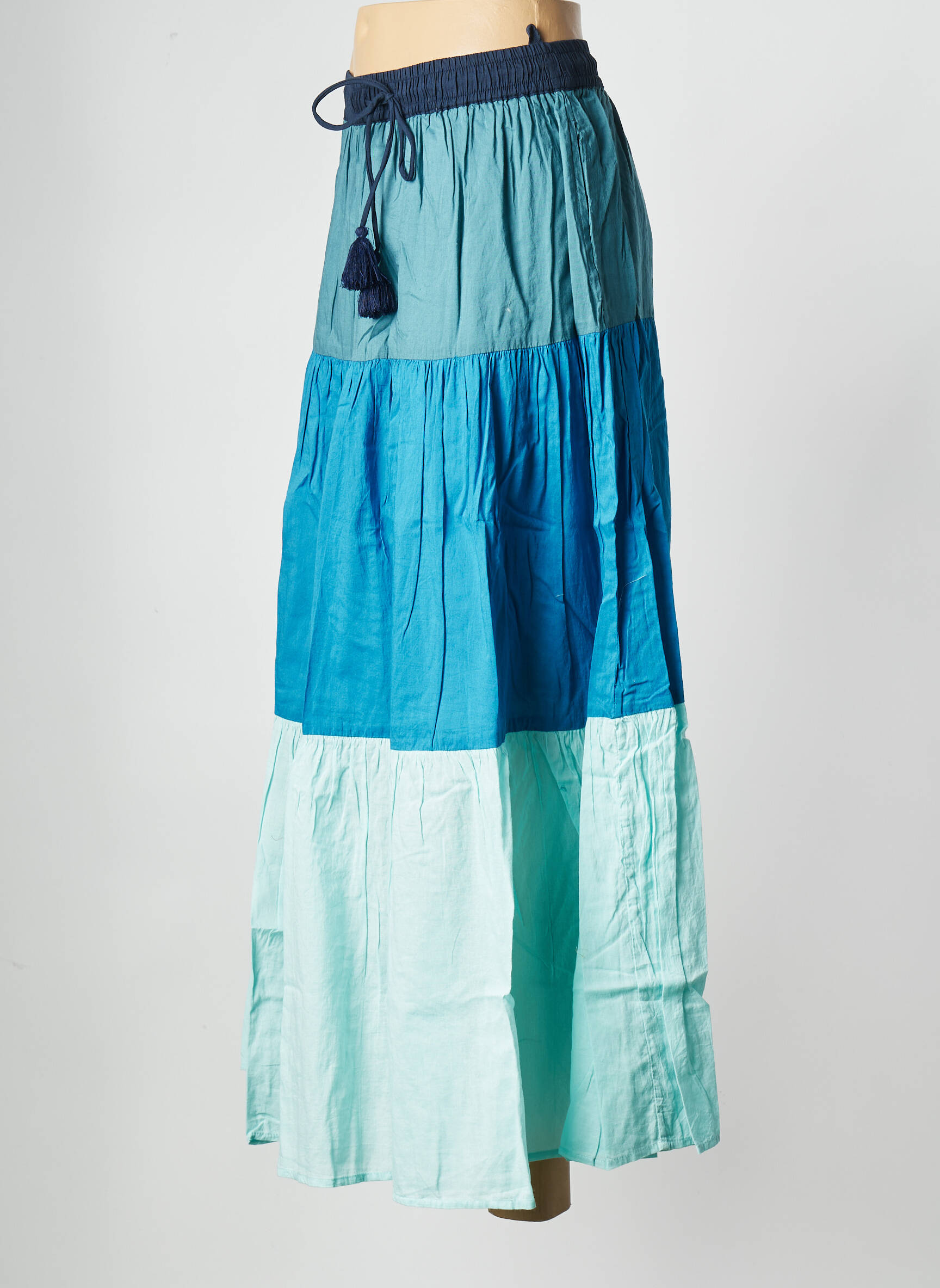 Craquez pour cette jupe longue LEON & HARPER à petit prix qui illumine votre look avec ses magnifiques nuances de bleu dégradé. Son aspect légèrement froissé, sa taille élastique ajustée par un lien à pompons et sa coupe ample en font une pièce à la fois tendance et confortable, parfaite pour profiter d’un style bohème chic sans se ruiner.