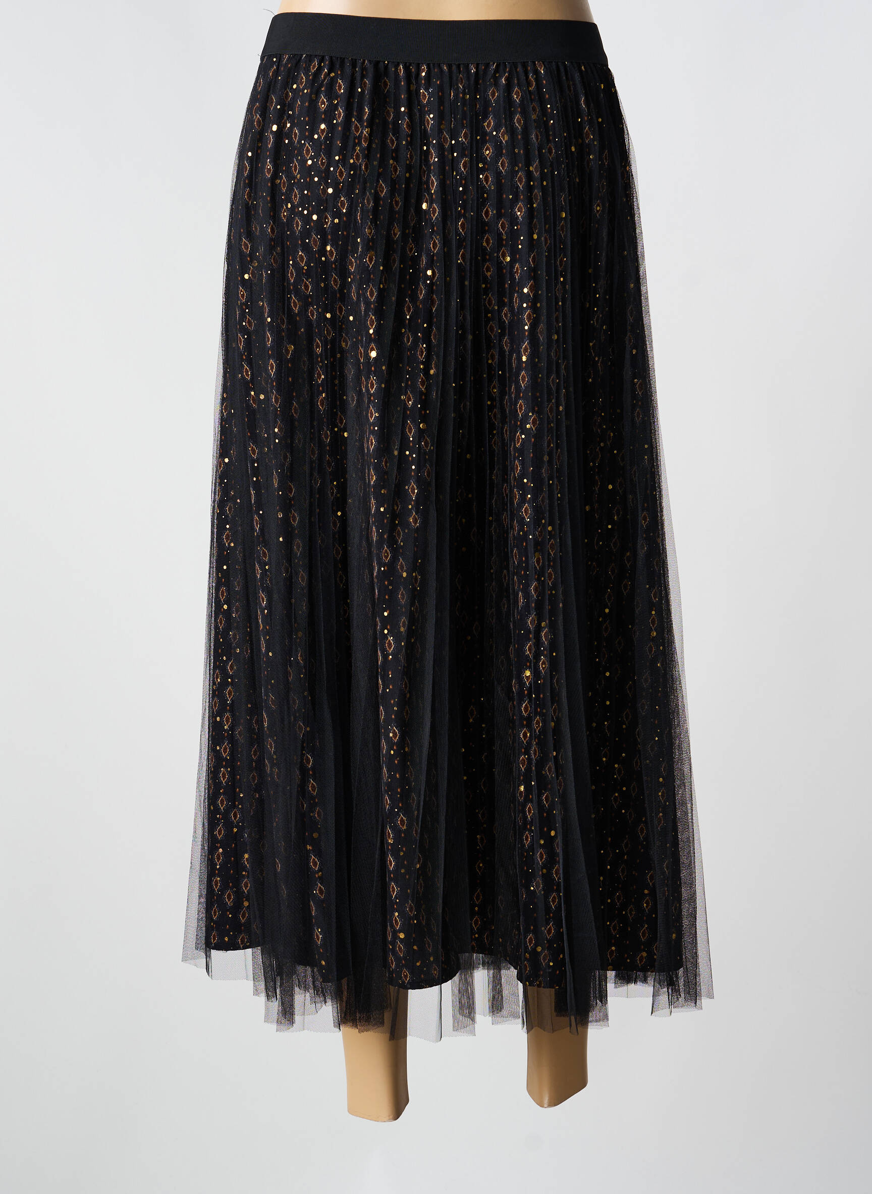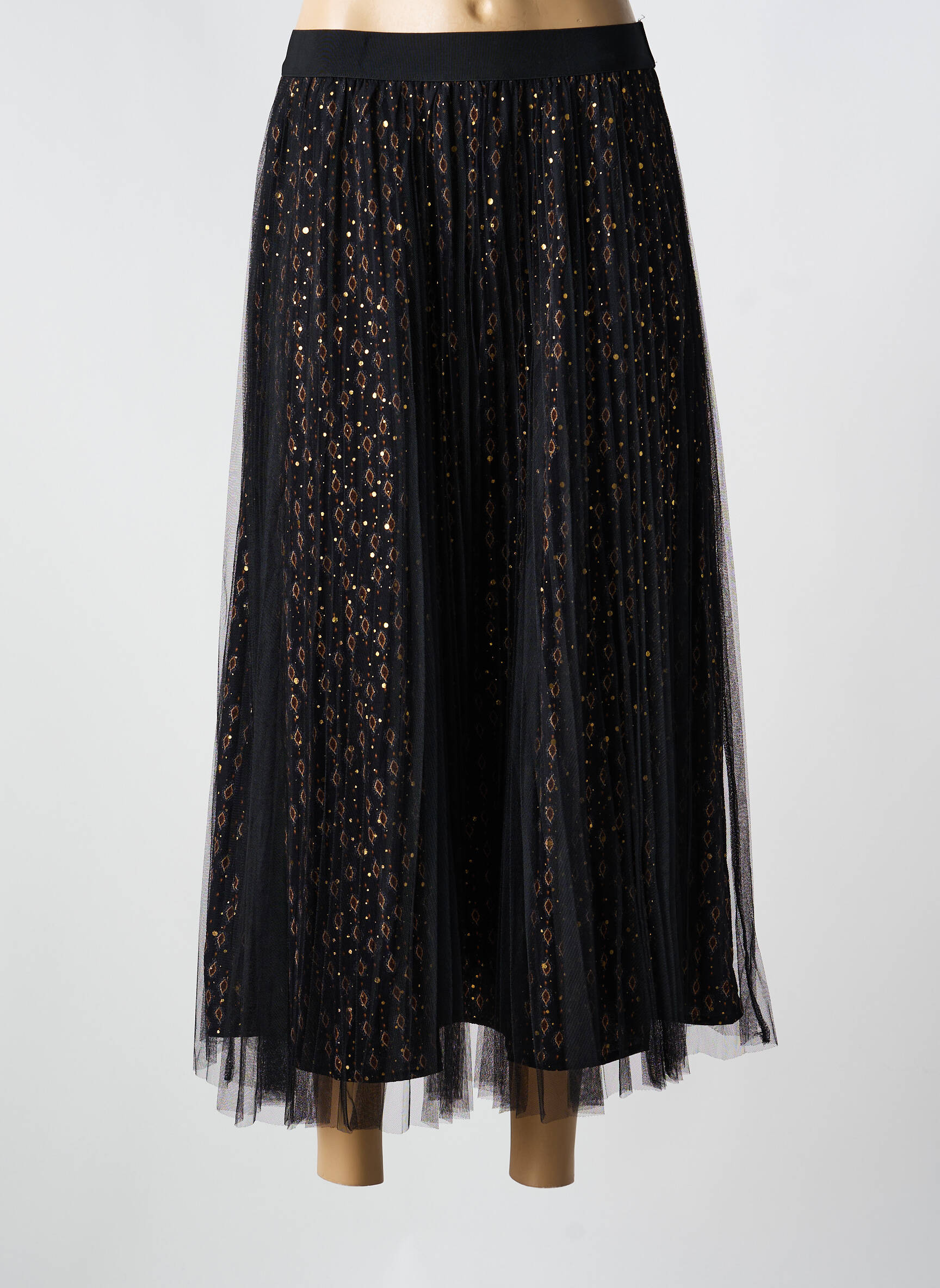 Craquez pour cette jupe longue signée MOLLY BRACKEN à prix tout doux, une véritable opportunité pour enrichir votre garde-robe sans vous ruiner. Son tissu aérien se compose d’un voile noir orné de fins motifs dorés, apportant une touche sophistiquée et délicate à votre silhouette. Idéale pour varier les styles sans compromis, elle combine élégance et légèreté, tout en restant ultra accessible, parfaite pour faire la différence lors de vos sorties ou au quotidien.