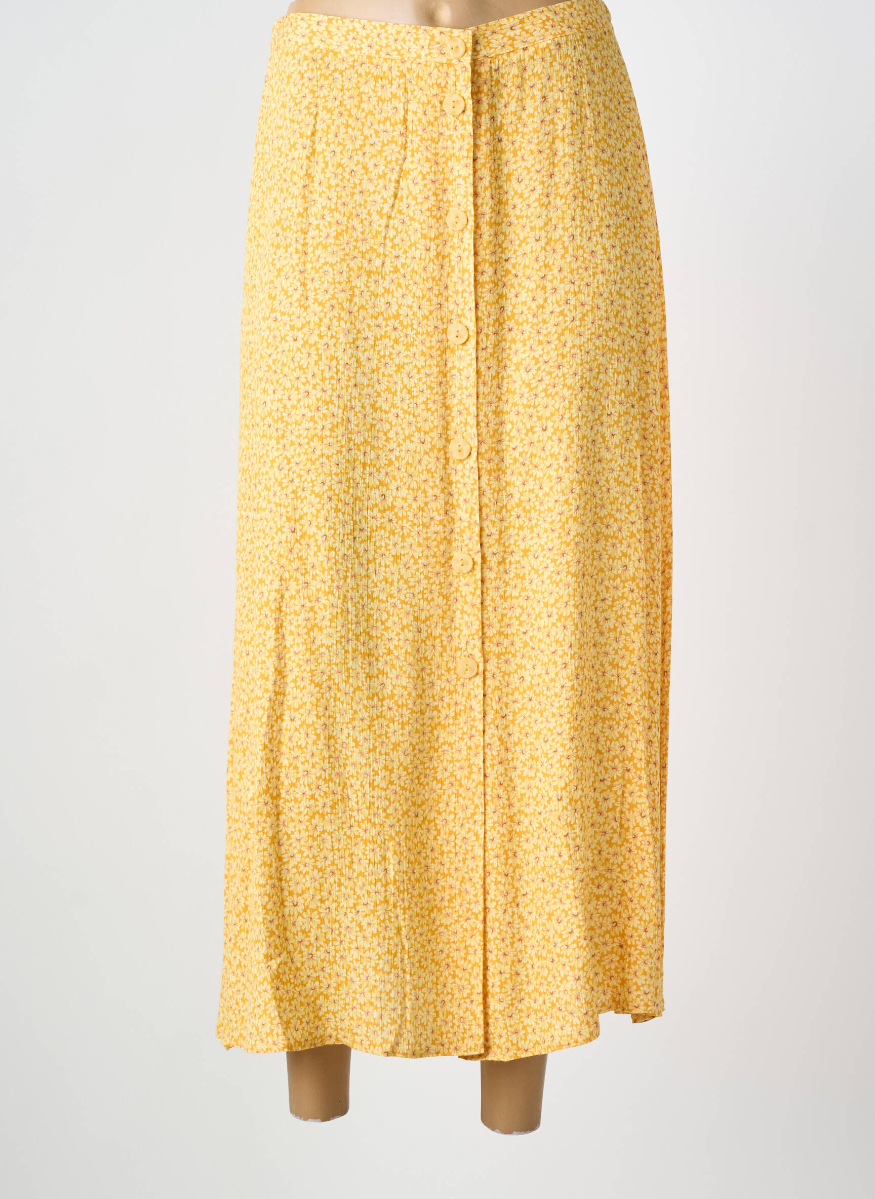 Offrez-vous une touche de fraîcheur à prix mini avec cette jupe longue PRUNELLE pour femme, idéale pour illuminer votre garde-robe sans vous ruiner. Son tissu léger et sa teinte jaune parsemée de petits motifs floraux apportent une note ensoleillée à votre look, tandis que la coupe fluide et la boutonnière apparente devant rajoutent une pointe de modernité. Profitez de cette pièce tendance à petit prix pour créer des tenues printanières et estivales pleines de charme.