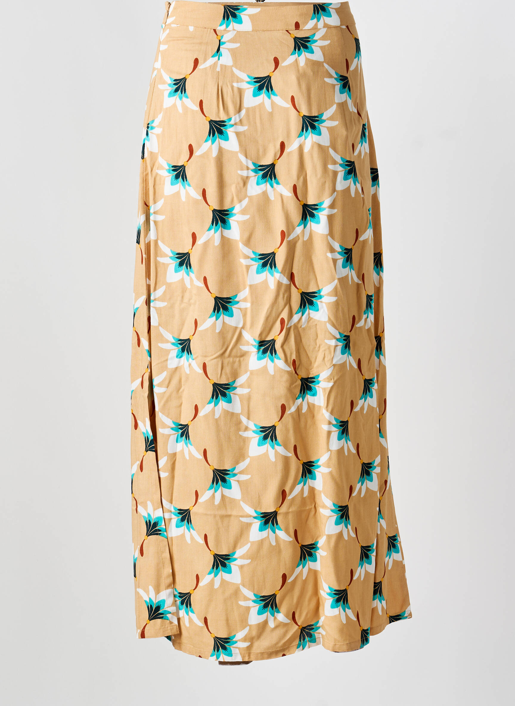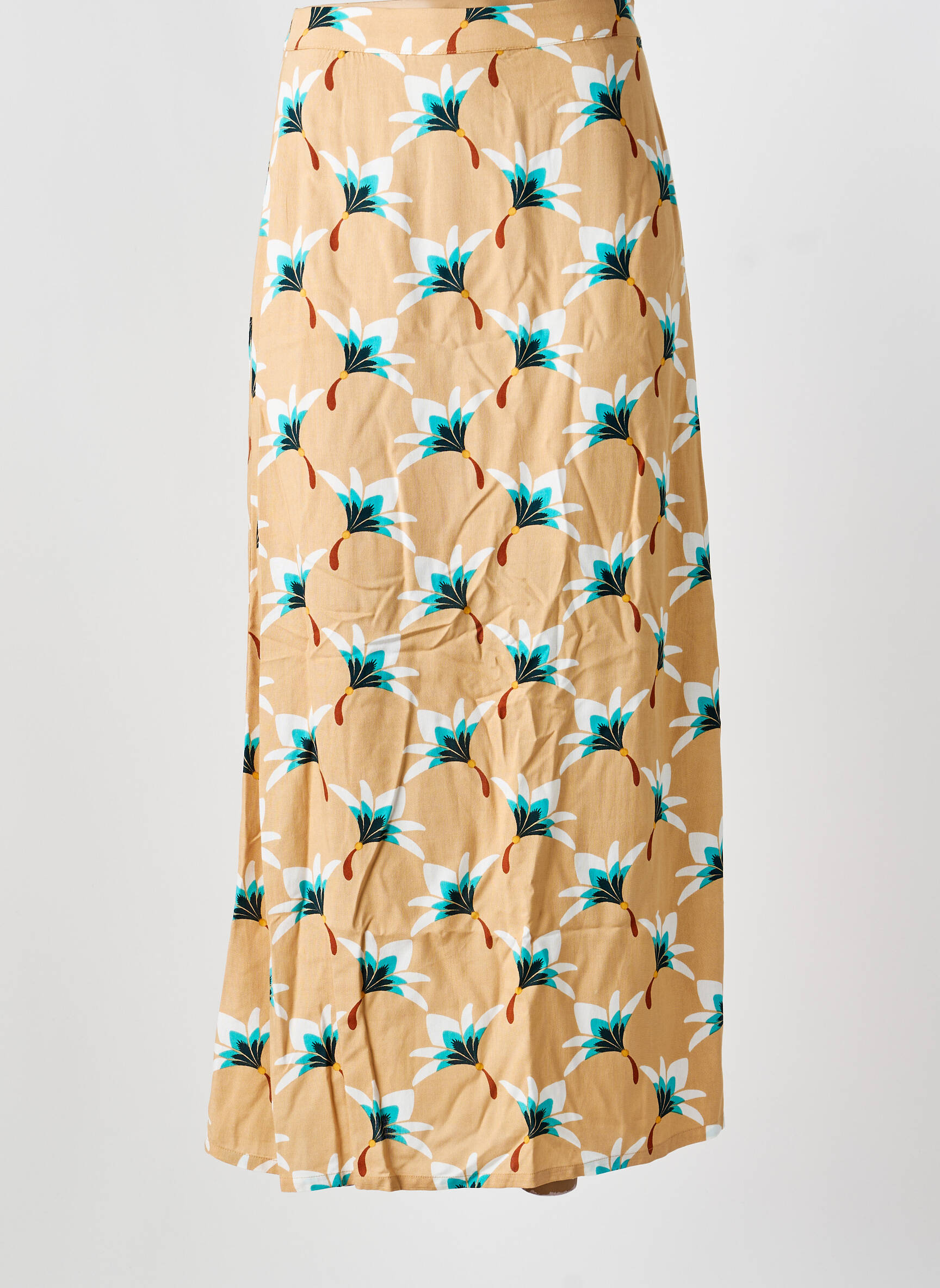 Profitez d’un véritable bon plan mode avec cette jupe longue signée SURKANA, parfaite pour donner du style à petit prix à vos tenues estivales. Sa coupe fluide met en valeur la silhouette tandis que son imprimé graphique aux accents tropicaux mêle un fond beige chaleureux à des motifs bleu turquoise et marron, pour un look à la fois élégant et original. Cette pièce légère s’adapte facilement à toutes les occasions et se combine sans effort avec vos hauts favoris pour un look tendance sans se ruiner.