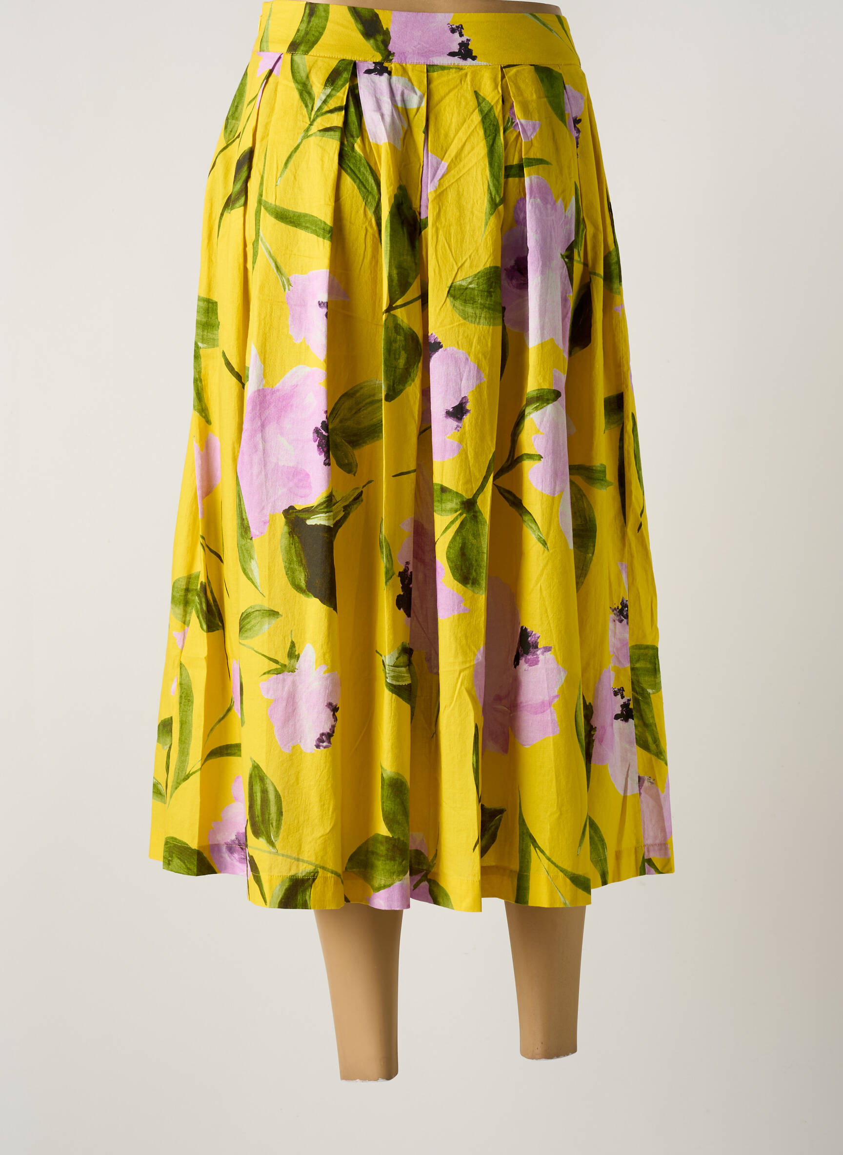 Craquez pour cette superbe jupe mi-longue de la marque 0039 ITALY, une pièce lumineuse à prix tout doux qui ajoutera une note florale et raffinée à vos tenues estivales, grâce à son élégant imprimé jaune vif et ses grandes fleurs roses et vertes qui mettent en valeur la silhouette avec ses plis plats à la taille pour un tombé fluide, le tout à un prix irrésistible pour un look tendance sans se ruiner.