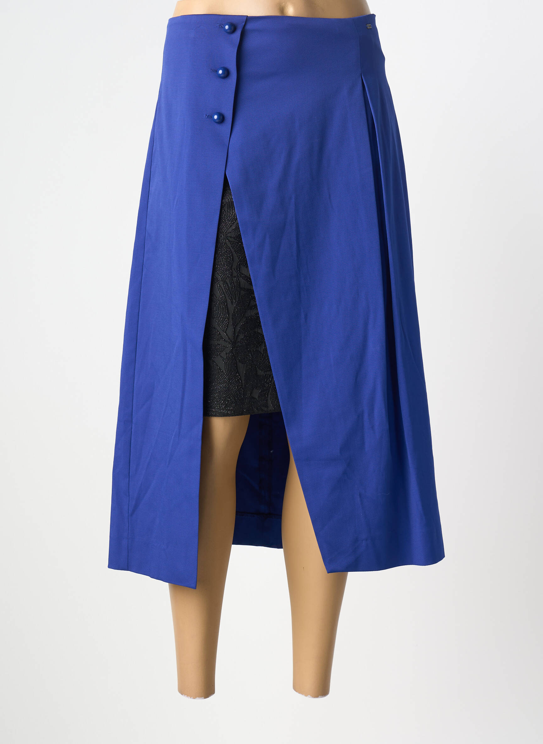 Voici une occasion en or de craquer pour une jupe mi-longue COP COPINE à prix tout doux, idéale pour ajouter une touche originale à votre garde-robe sans se ruiner. Sa coupe moderne séduit par une superposition de tissus dévoilée par une élégante fente sur le devant, fermée par de jolis boutons décalés à la taille, tandis que sa teinte bleu électrique dynamise instantanément votre silhouette. Profitez d’un look tendance signé COP COPINE, sans compromis sur le style ni sur le budget.
