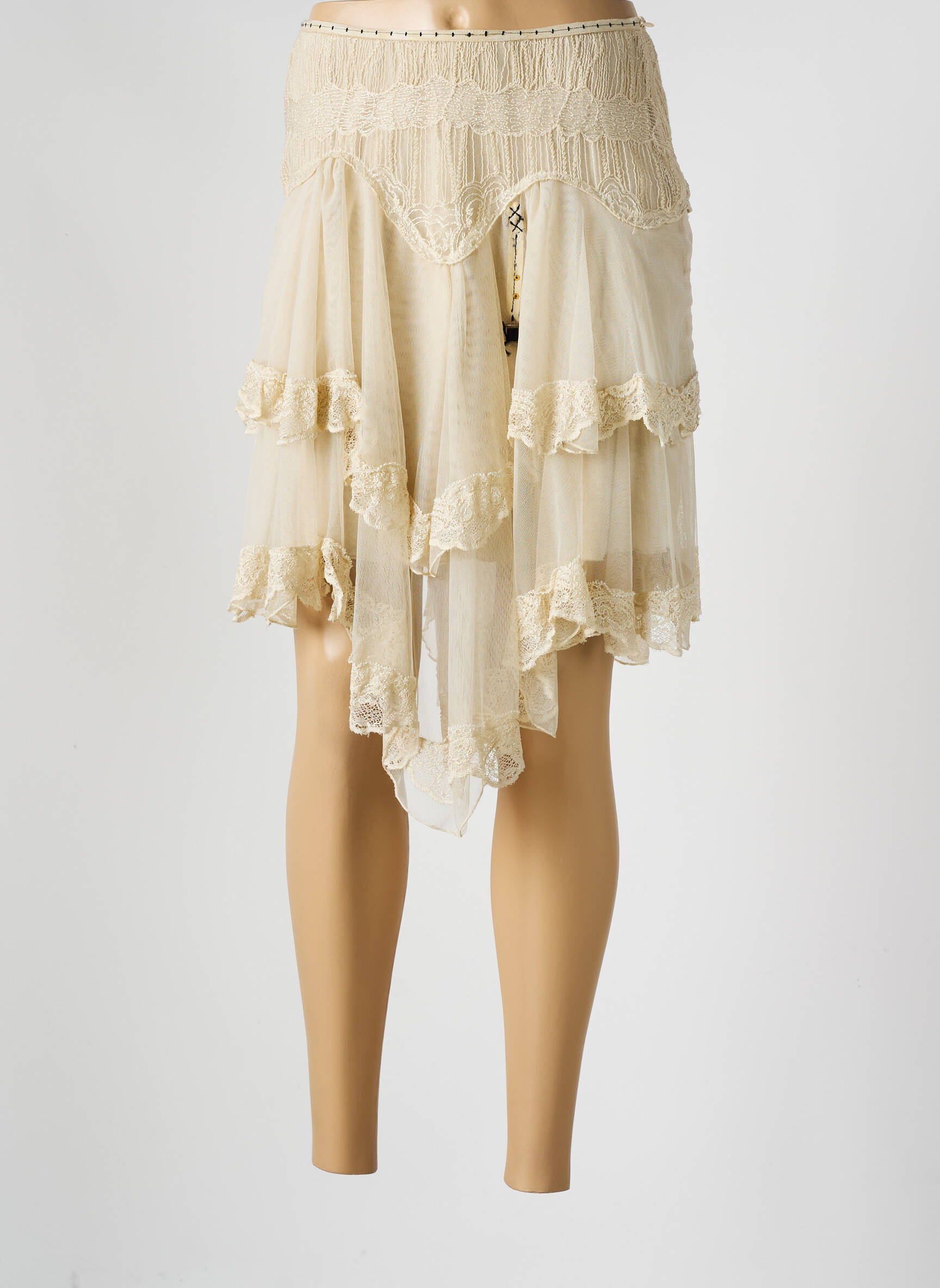 Offrez-vous une pièce élégante à prix doux avec cette jupe mi-longue ELISA CAVALETTI, idéale pour apporter une touche bohème chic à votre garde-robe. Son tissu fluide et léger se distingue par ses superpositions de volants délicats, sublimés par de fins détails en dentelle, pour un rendu raffiné et féminin à moindre coût. Profitez de ce bon plan mode pour affirmer votre style tout en réalisant de véritables économies.