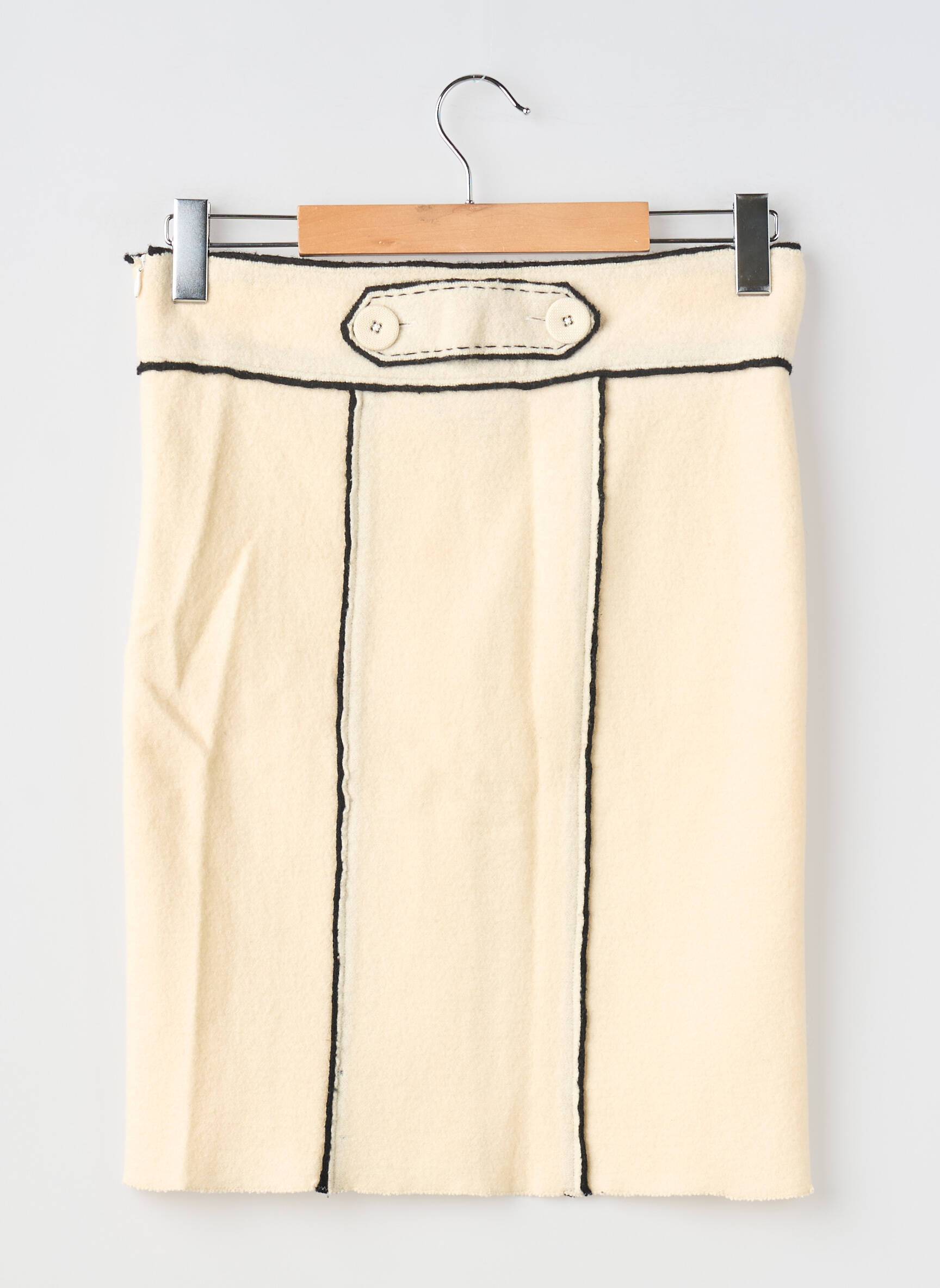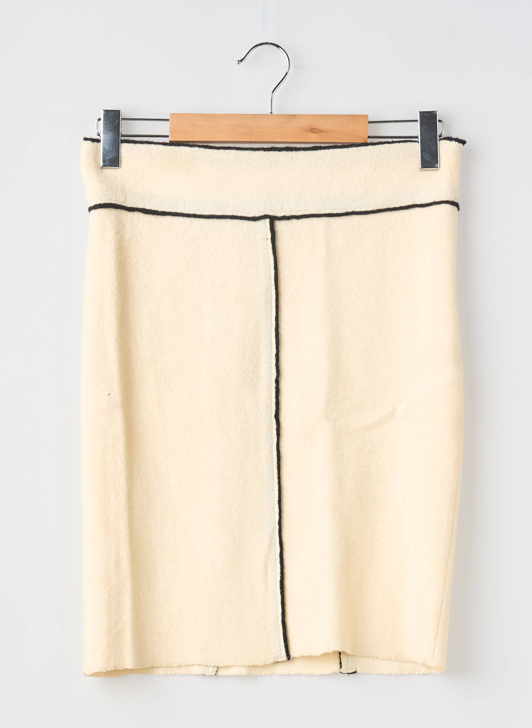 Profitez d’un bon plan sur cette jupe mi-longue Emporio Armani, parfaite pour afficher un style raffiné sans vous ruiner ; son coloris crème, rehaussé par d'élégants liserés noirs, apporte une touche chic et minimaliste à toutes vos tenues aussi bien pour le bureau que pour vos sorties.