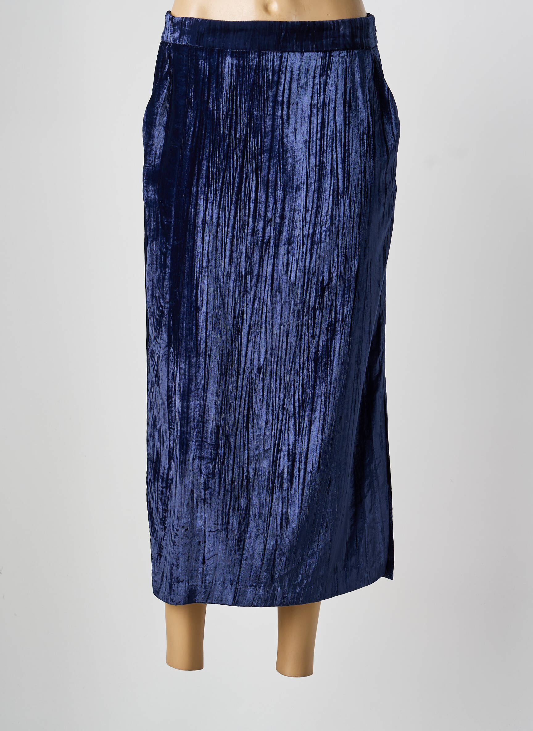 Profitez d’une superbe affaire avec cette jupe mi-longue de la marque FIVE, idéale pour apporter une touche sophistiquée à votre dressing sans vous ruiner. Son tissu effet velours plissé bleu nuit capte la lumière avec élégance, créant un jeu de reflets subtils, tandis que sa coupe droite intemporelle s’adapte facilement à vos envies de style, du bureau à une sortie entre amis. C'est le bon plan mode qui permet d’adopter une pièce originale et chic à prix doux.