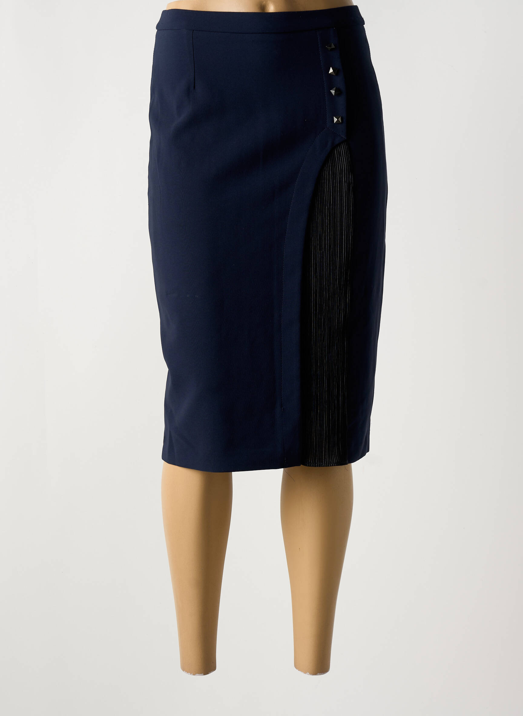 Craquez pour cette jupe mi-longue de la marque GREGORY PAT à prix mini, une véritable opportunité pour donner du style à votre garde-robe sans vous ruiner. Son design élégant se distingue par une coupe droite et un jeu d’ouverture sur le côté souligné par des boutons décoratifs, dévoilant subtilement une matière plissée ton sur ton pour une touche de modernité et de sophistication. Parfaite pour mettre votre silhouette en valeur, cette jupe pas chère vous offre tout le chic des grandes marques à petit prix.