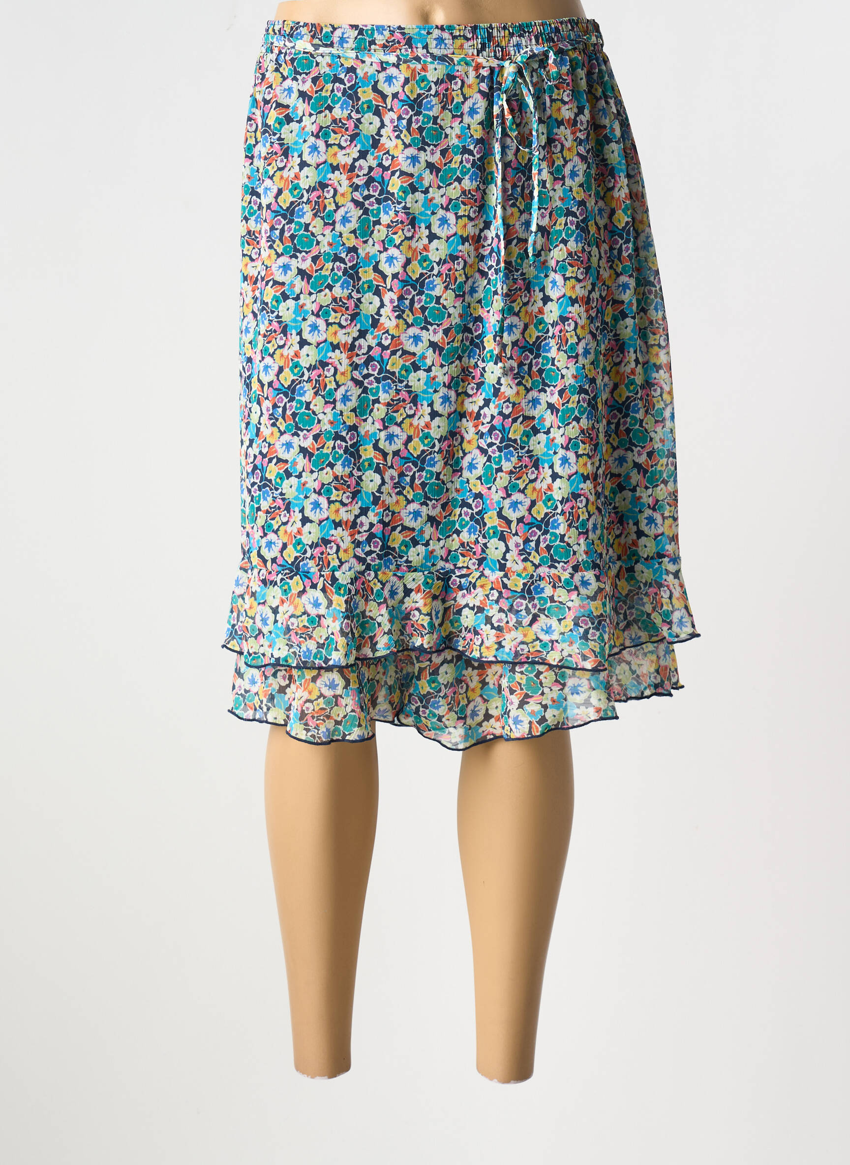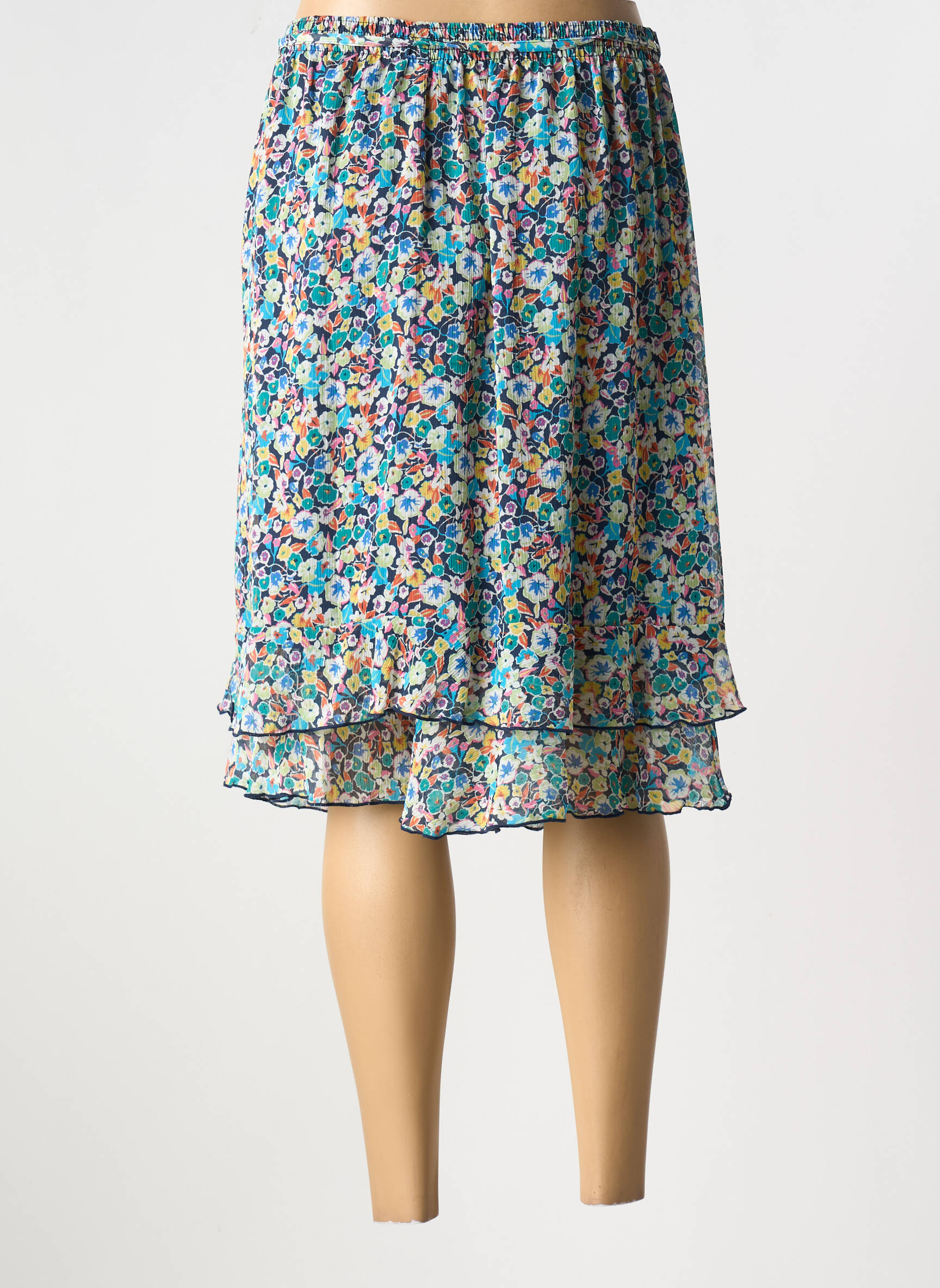 Profitez d’un bon plan mode avec cette jupe mi-longue GRIFFON pour femme, un choix parfait pour ajouter une touche de fraîcheur à votre garde-robe sans vous ruiner. Son tissu léger et fluide est sublimé par un imprimé fleuri multicolore, tandis que la coupe à double volant apporte un joli jeu de superposition et de mouvement à chaque pas. Lien à la taille ajustable pour encore plus de confort, cette jupe est idéale pour illuminer vos journées avec élégance à prix tout doux.