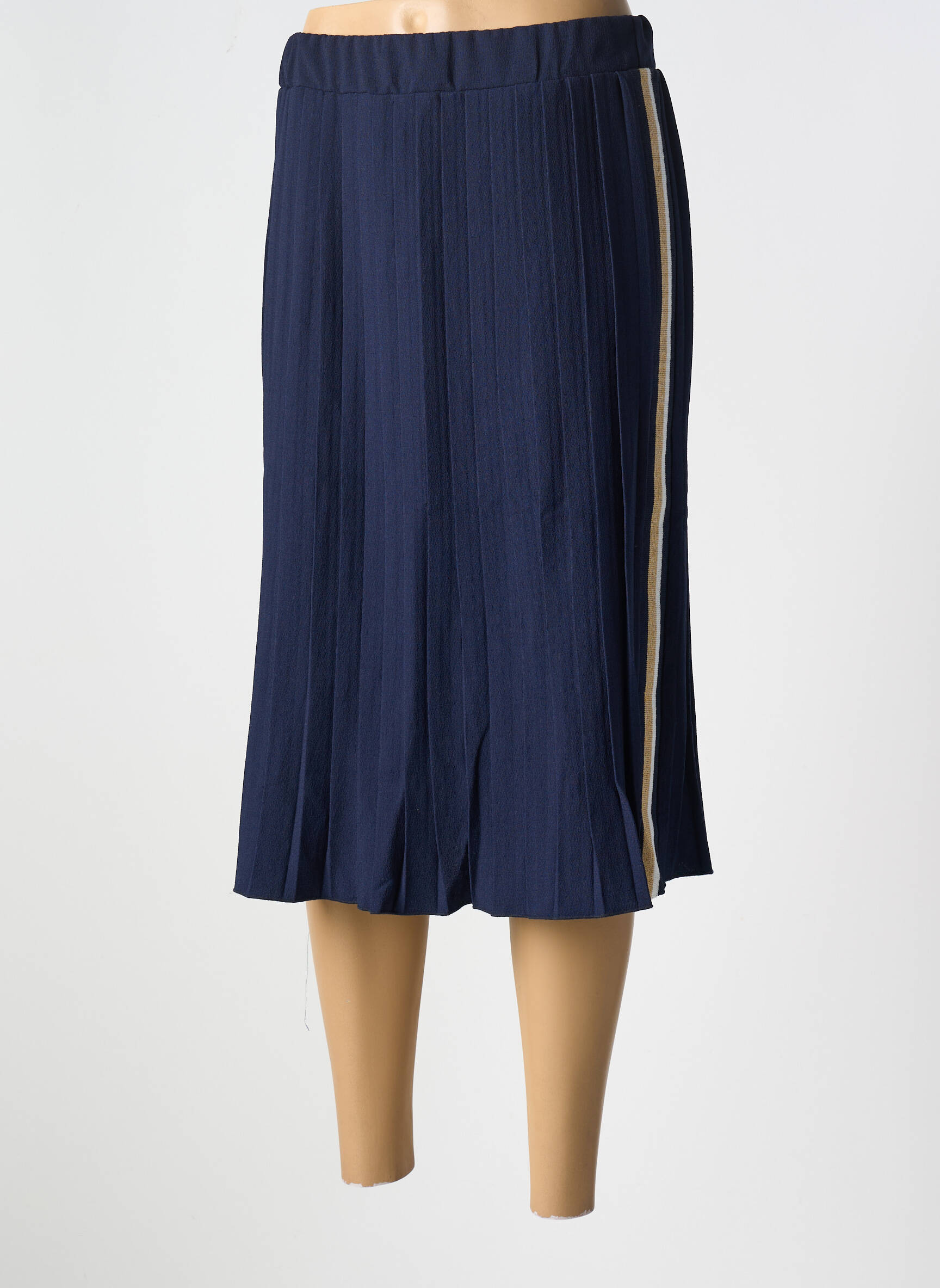 Craquez pour cette jupe mi-longue LE BOUDOIR D'EDOUARD à prix mini, idéale pour apporter une touche chic et moderne à vos looks du quotidien. Sa coupe légèrement plissée met en valeur votre silhouette, tandis que la bande contrastante sur le côté ajoute une note tendance et dynamique, parfait pour celles qui souhaitent allier élégance et économies.