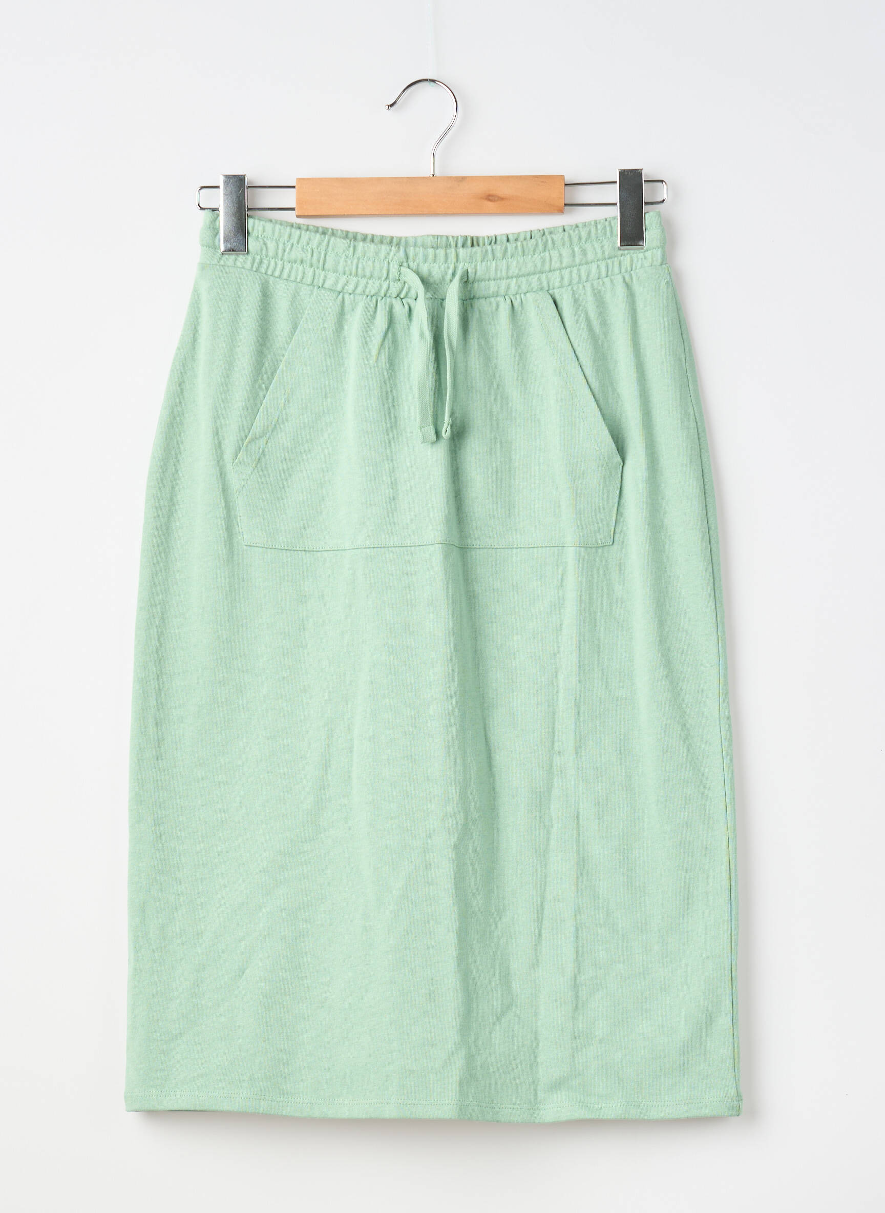 Craquez pour cette jupe mi-longue pour femme de la marque MANGO, une vraie trouvaille à petit prix pour ajouter une touche de fraîcheur à votre dressing sans vous ruiner. Son coloris vert pastel très doux, sa coupe droite ultra facile à porter et sa taille élastiquée avec cordon de serrage en font une pièce confortable et tendance à saisir d’urgence pour réaliser de belles économies sans sacrifier le style.