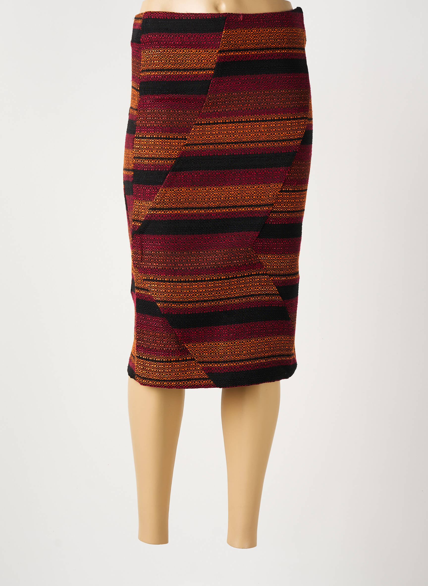 Craquez pour cette jupe mi-longue de la marque MANIGANCE à prix mini, parfaite pour apporter une touche graphique et chaleureuse à votre garde-robe sans vous ruiner. Son motif à rayures larges dans des tons bordeaux, orange et noir, subtilement agencés en diagonale, vous assure un look moderne et tendance à petit prix, idéal pour dynamiser n’importe quelle tenue de saison. Profitez de l’opportunité exclusive de faire des économies tout en restant élégante grâce à ce modèle aussi unique qu’abordable.