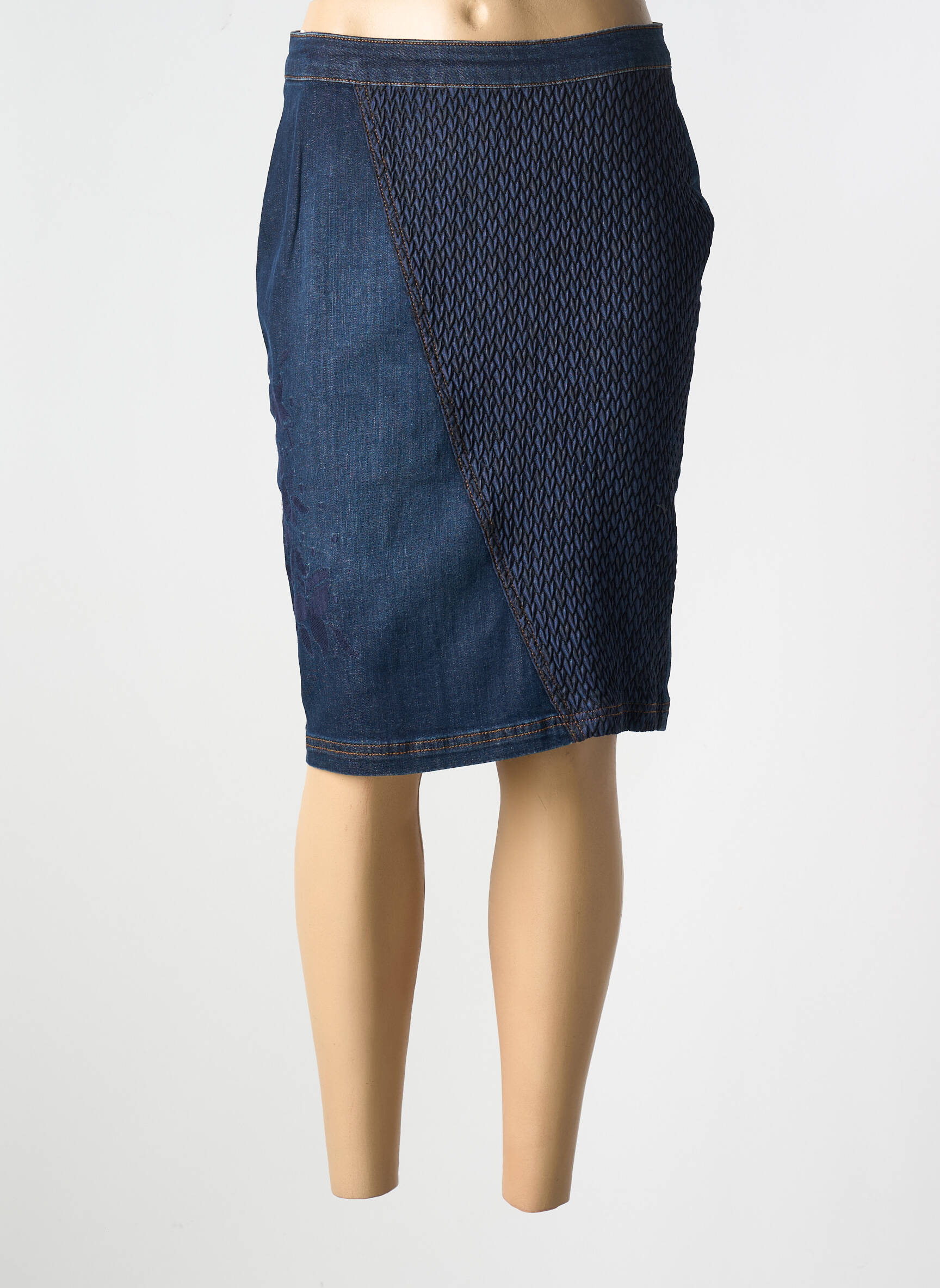 Profitez d'une offre exceptionnelle avec cette jupe mi-longue de la marque MERI & ESCA à prix mini, parfaite pour dynamiser votre garde-robe sans vous ruiner. Sa coupe ajustée et son jeu de textures en denim apportent une touche d’originalité tout en élégance, idéale pour sublimer votre silhouette au quotidien ou lors de vos sorties.