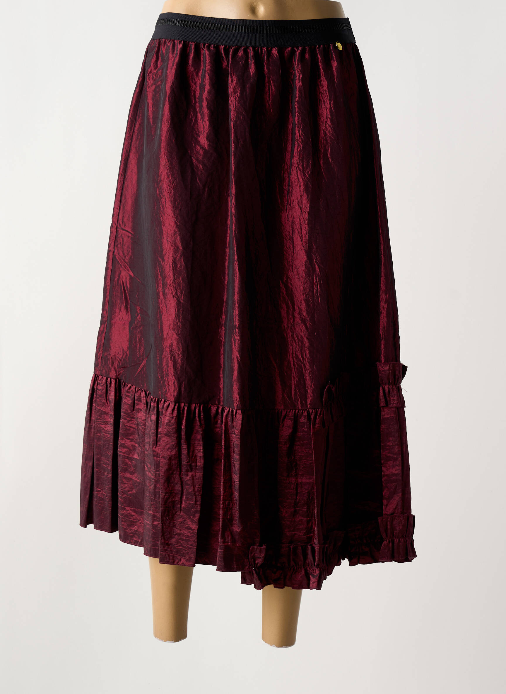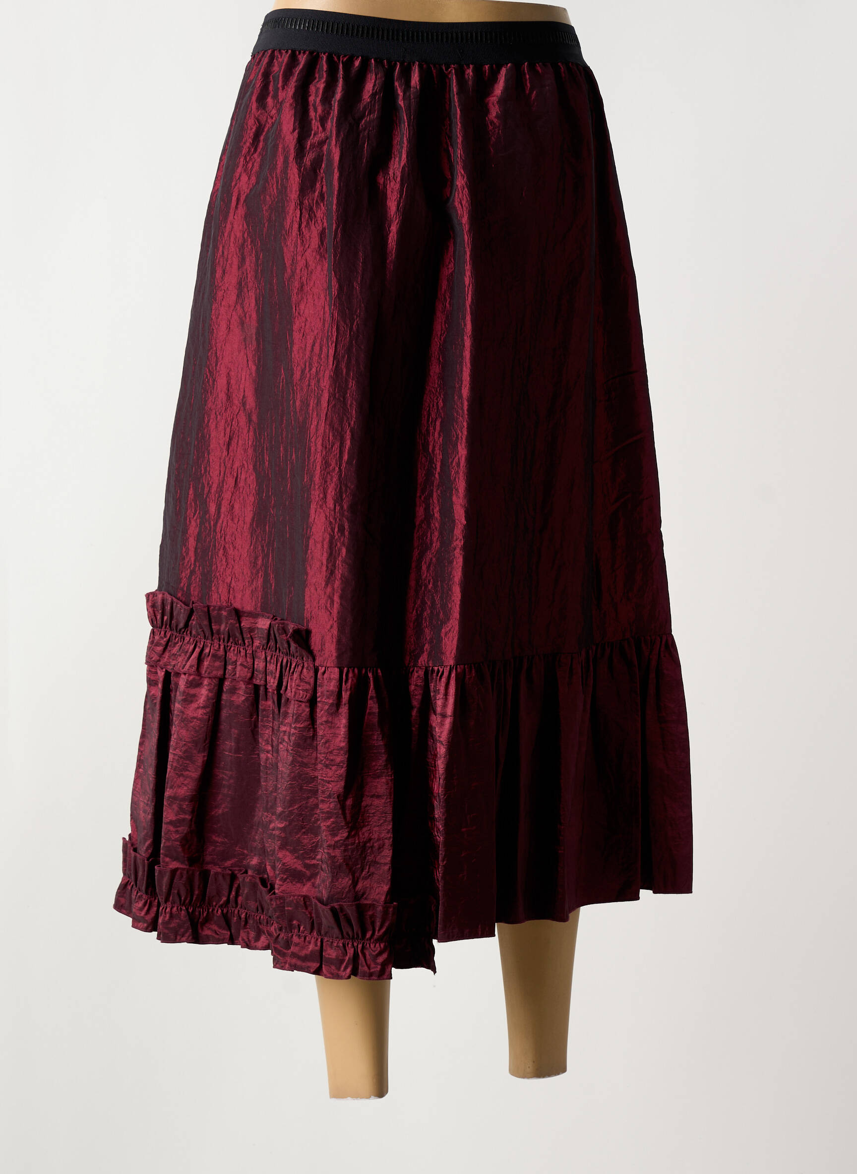 Profitez d'une véritable aubaine avec cette jupe mi-longue de la marque PAUL BRIAL, idéale pour apporter une touche d'élégance à petit prix à votre garde-robe. Avec sa texture légèrement satinée et son sublime jeu de couleurs bordeaux et noir, cette jupe séduit par son effet froissé tendance et sa coupe fluide. Le détail du large volant sur l’ourlet ajoute une note raffinée et féminine, parfaite pour mettre en valeur votre silhouette sans compromis sur le confort ou le style.