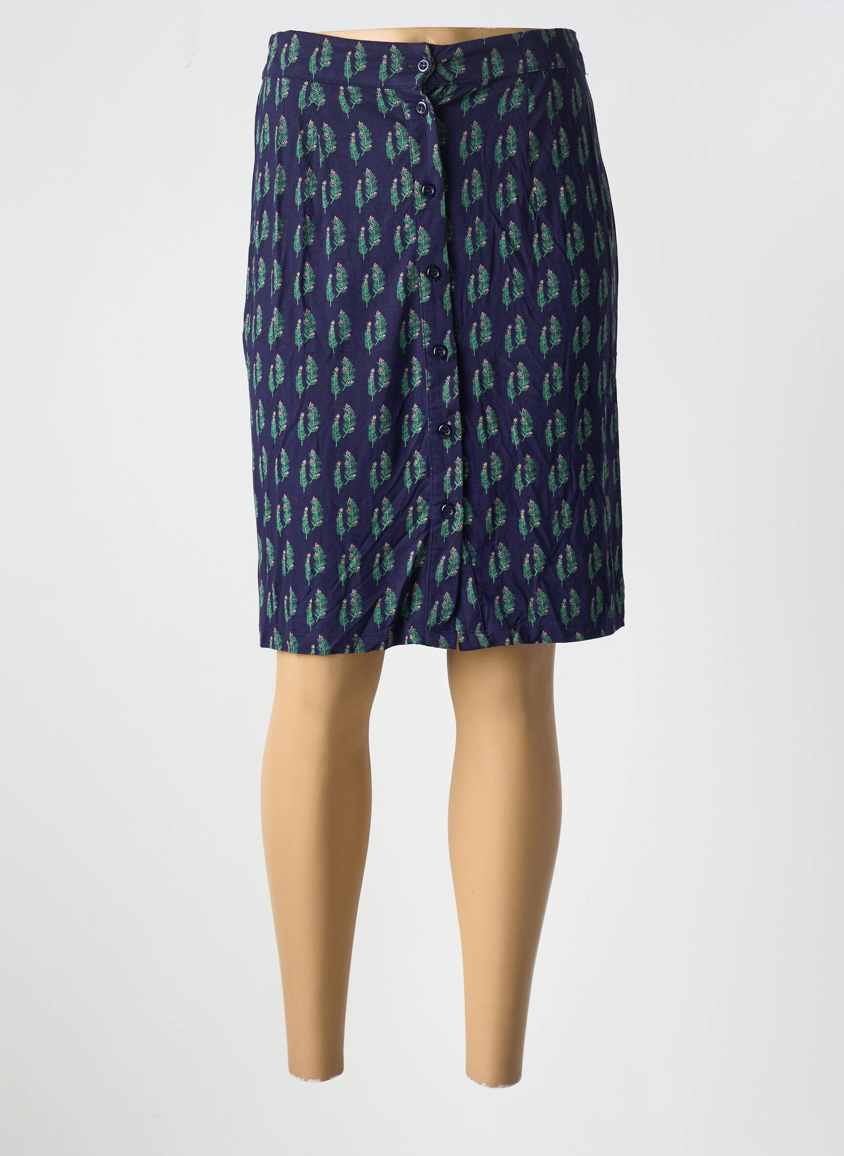 Craquez pour cette jupe mi-longue PRETTY VACANT pour femme, un véritable bon plan à petit prix pour renouveler votre garde-robe sans vous ruiner. Son imprimé graphique vert sur fond bleu marine apporte une touche originale et tendance à vos tenues, tandis que sa coupe droite subtilement boutonnée sur le devant met en valeur la silhouette avec élégance. Facile à porter au quotidien, cette jupe sera votre alliée pour composer des looks stylés sans compromis sur le budget.