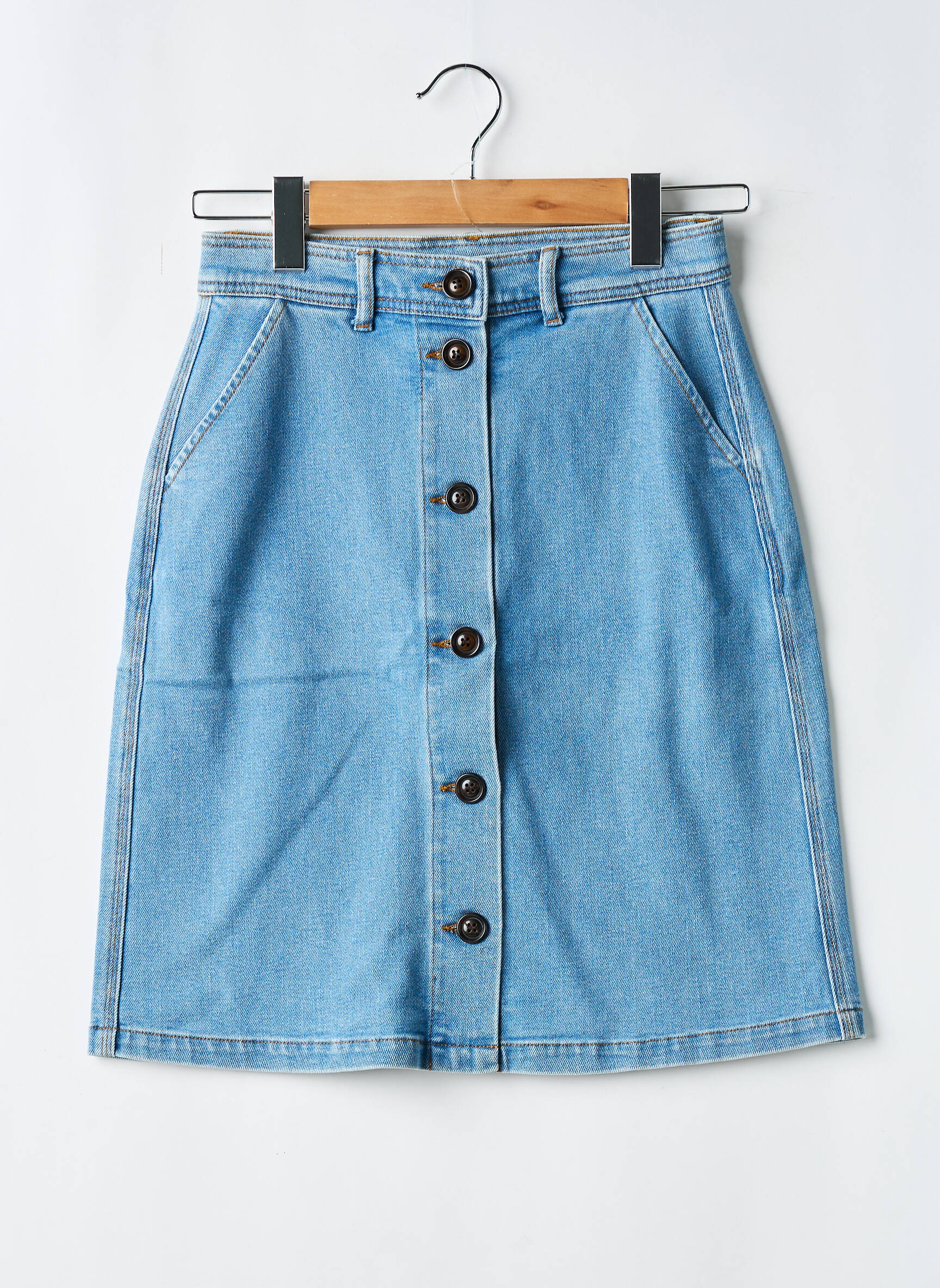 Profitez d’un bon plan mode avec cette jupe mi-longue en denim clair de la marque SOEUR, idéale pour un style décontracté et tendance à prix mini. Sa coupe droite et sa boutonnière centrale apportent une touche rétro très actuelle, tandis que ses poches côtés et son tissu épais en font un basique facile à porter au quotidien. C’est la pièce parfaite pour renouveler votre dressing sans faire de compromis sur votre budget.